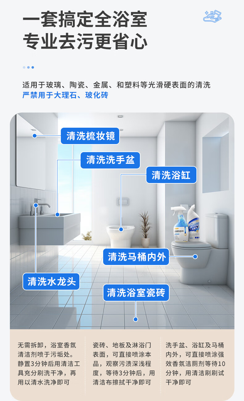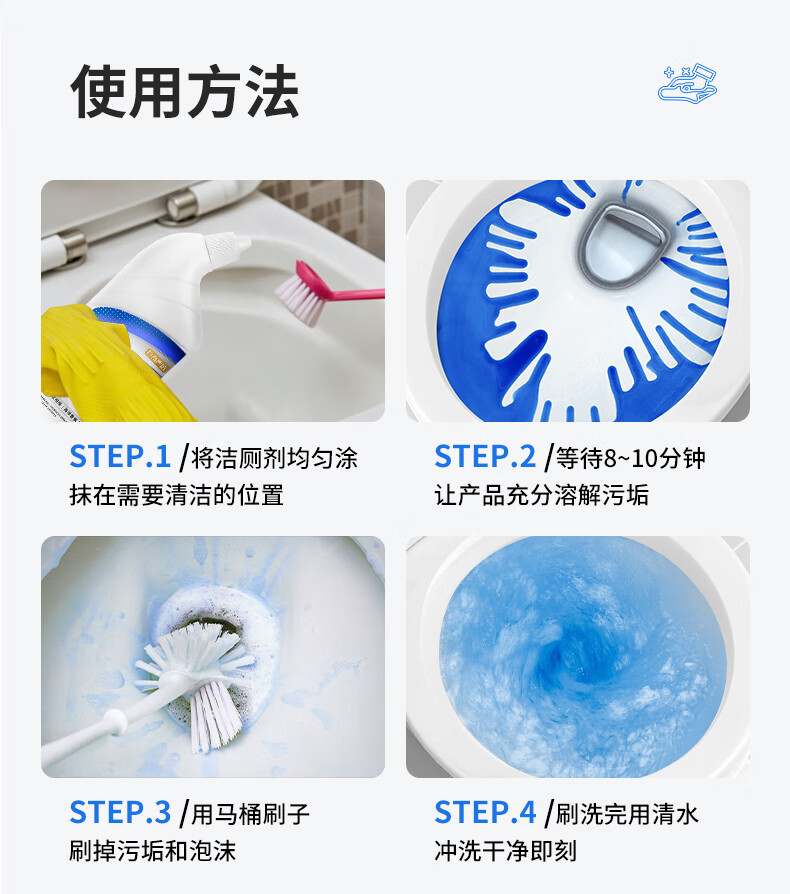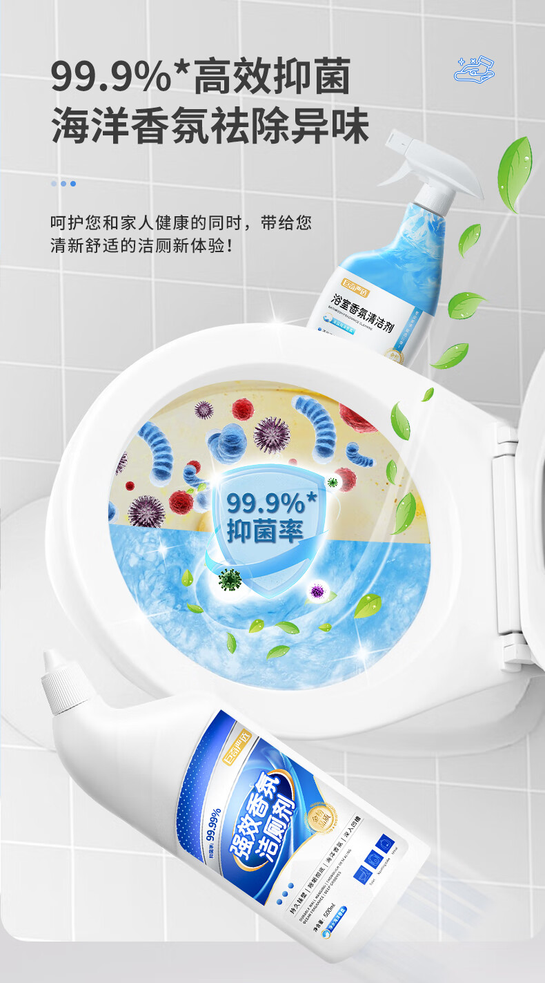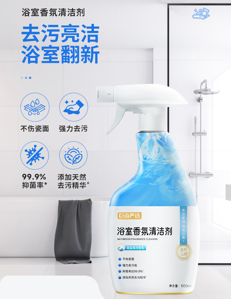 巨奇(JUQI) 金榜系列 卫浴洁厕清洁四件套 500ml+500ml(含除霉啫喱+双色洁厕块+缝隙刷) 蓝色(单位:套)