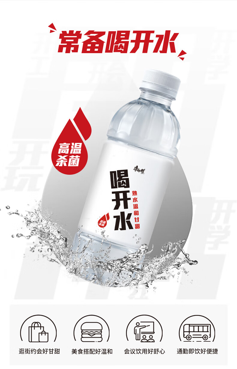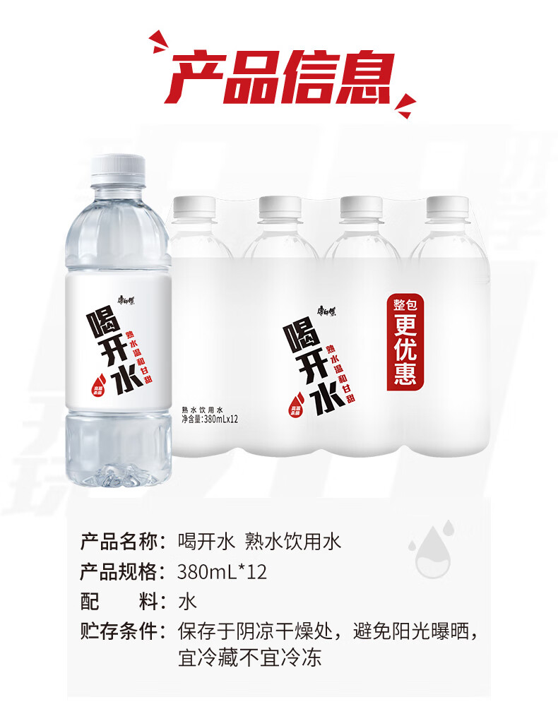 康师傅 喝开水温和熟水饮用水超高温杀菌 380ml*12瓶 熟水温和 本白色(单位:箱)
