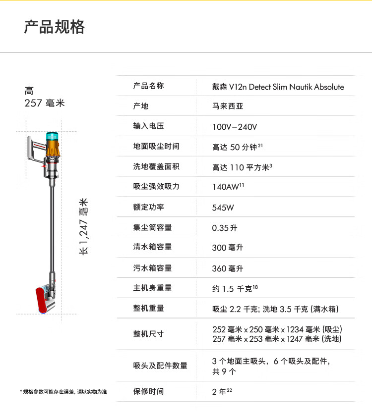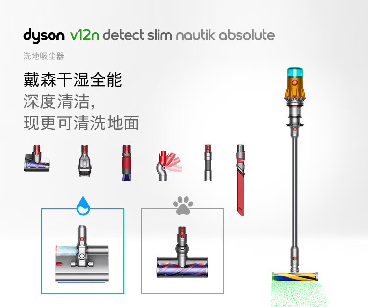 戴森(DYSON) V12n Detect Slim Nautik Absolute 140AW强劲吸力 吸尘洗地机 镍铜色(单位:件)