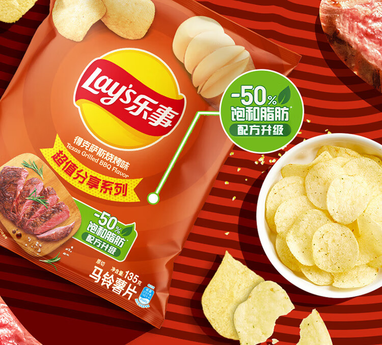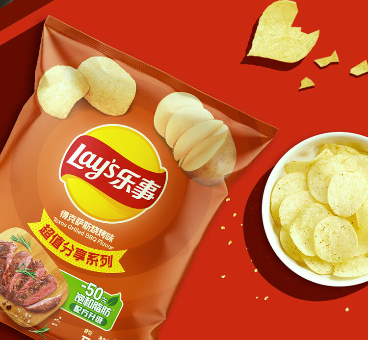 乐事(Lay's) 得克萨斯烧烤味薯片 135g*2 真薯原切 够薄够脆 炫橙色(单位:组)