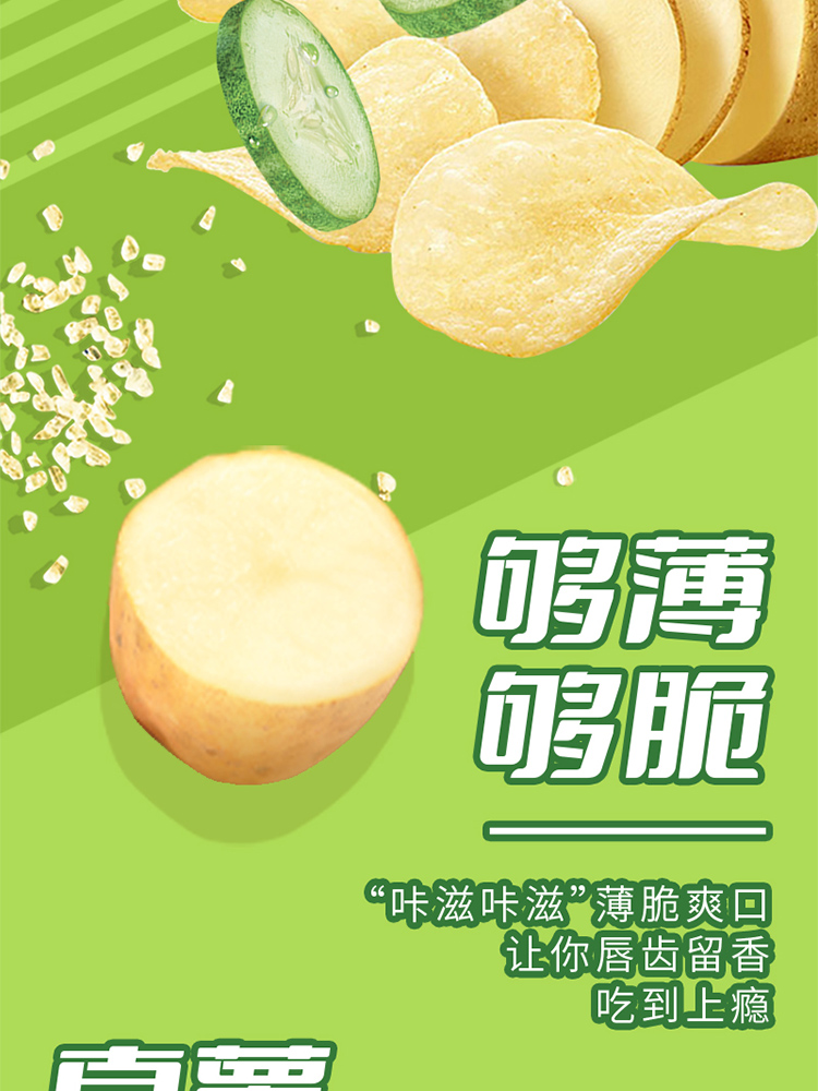 乐事(Lay's) 黄瓜味薯片 135g*2 真薯原切 够薄够脆 柠绿色(单位:组)