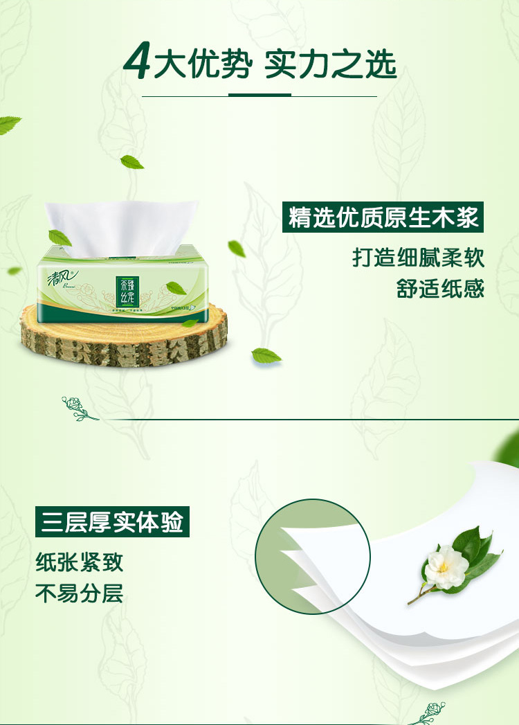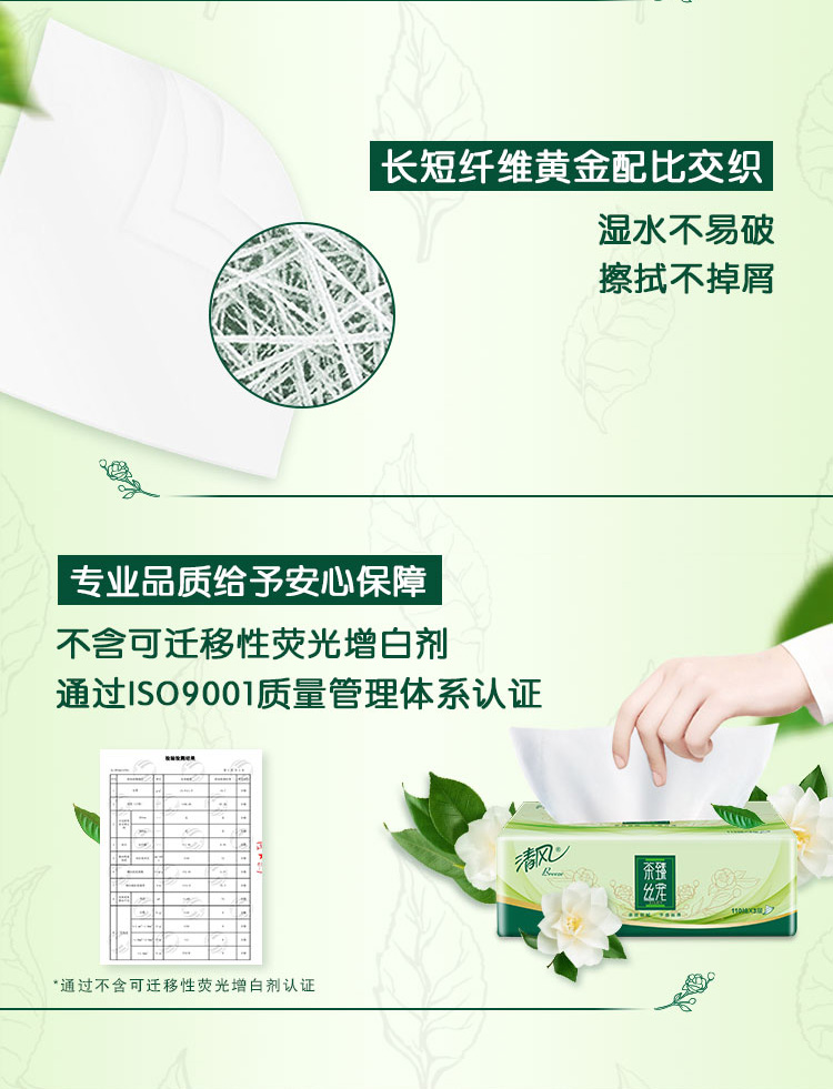 清风 茶臻软抽 BR13SGE 3层110抽3包装 浅杉绿(单位:组)