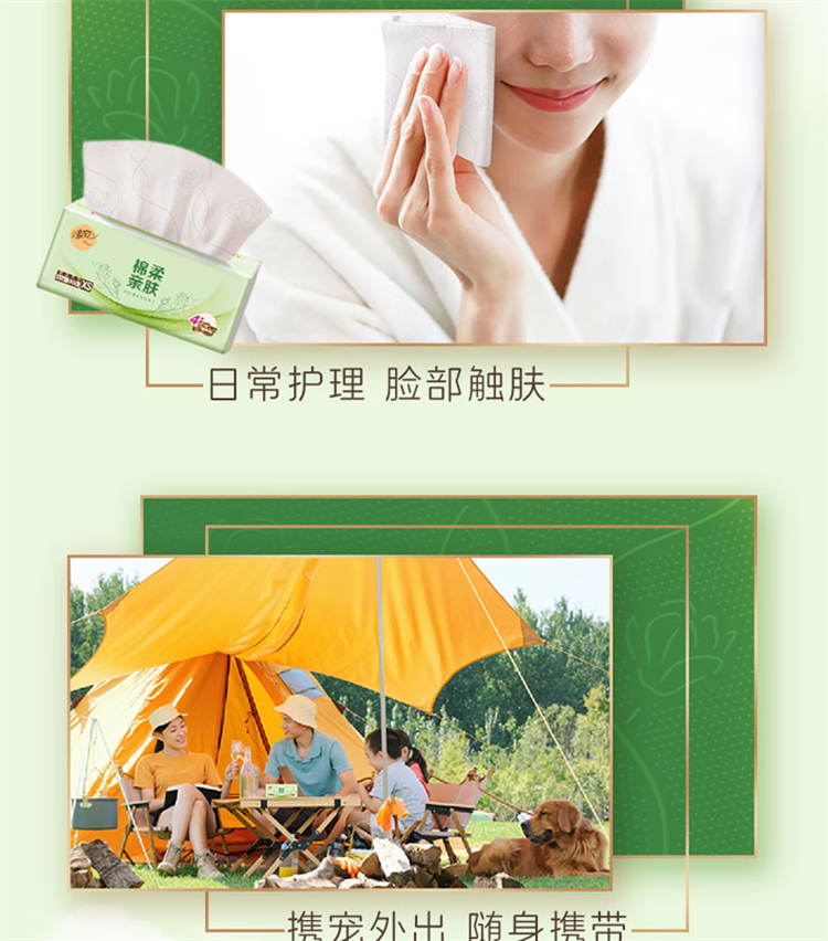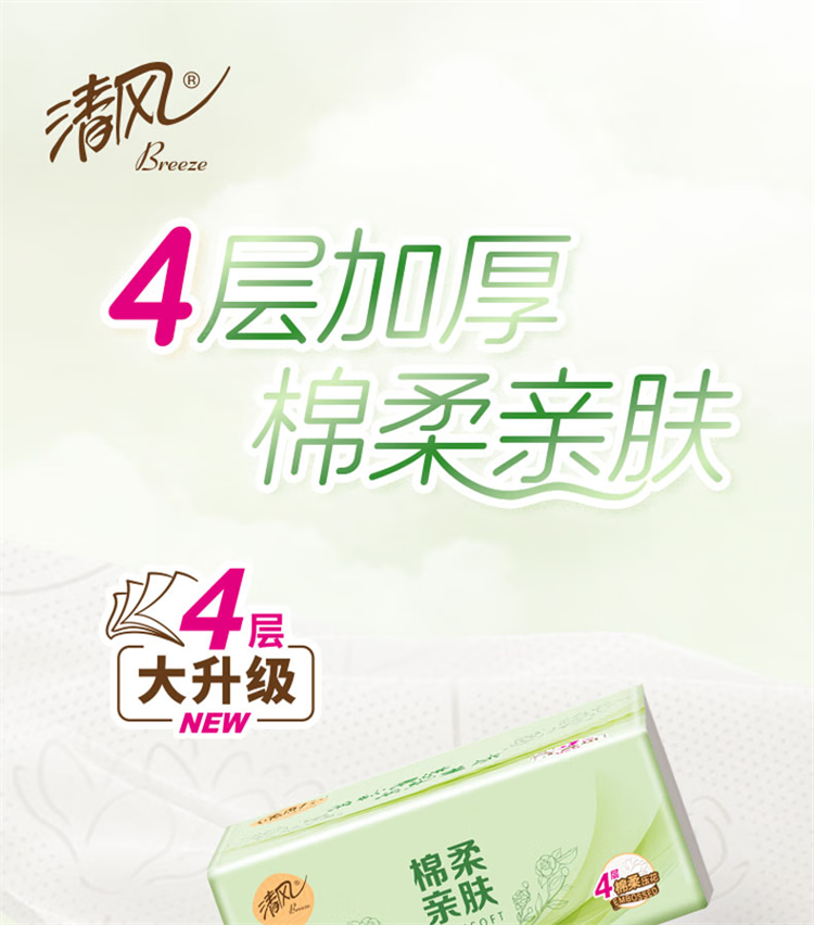 清风 棉柔抽纸 BR12XSG24E1 4层80抽*3包 松石绿(单位:组)