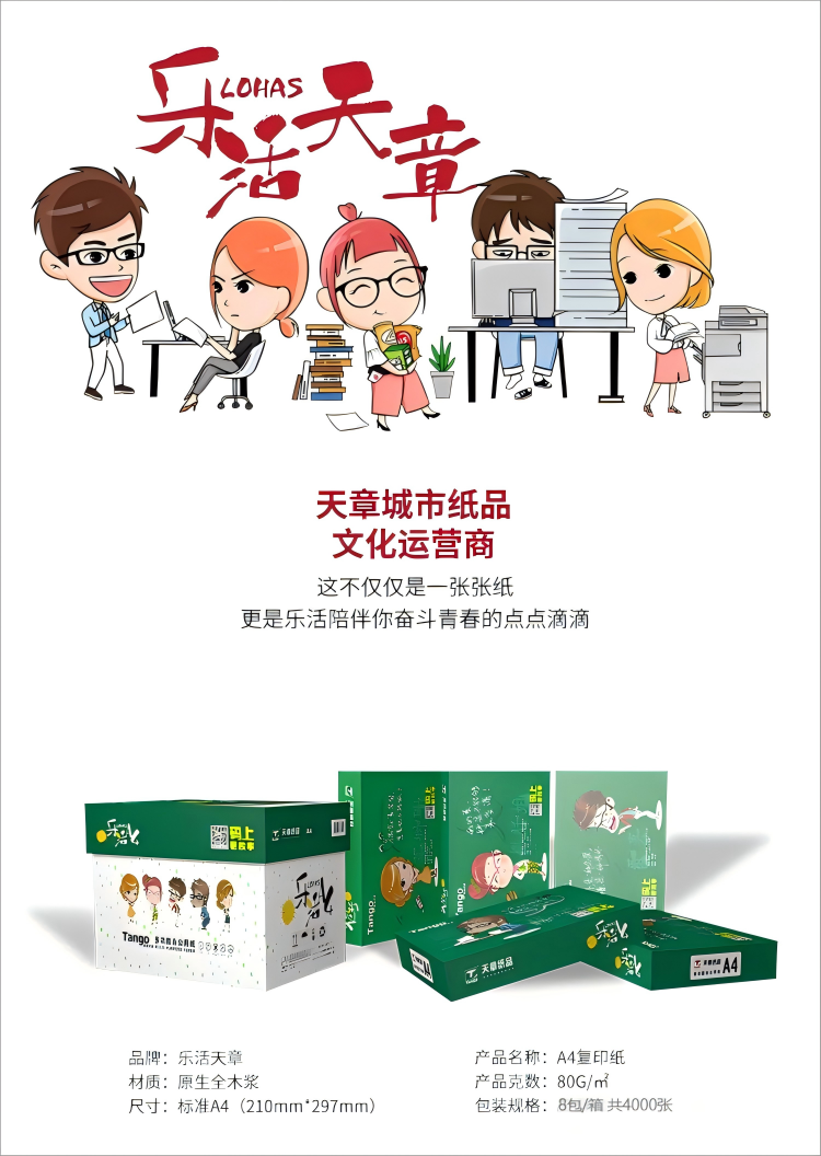 乐活天章 复印纸 A4纸 80g 8包/箱 白色(单位:箱)