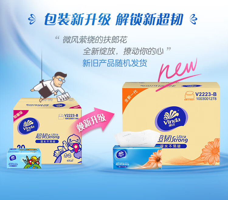 维达 抽纸超韧 V2223-B 3层120抽 20包 蓝色(单位:箱)