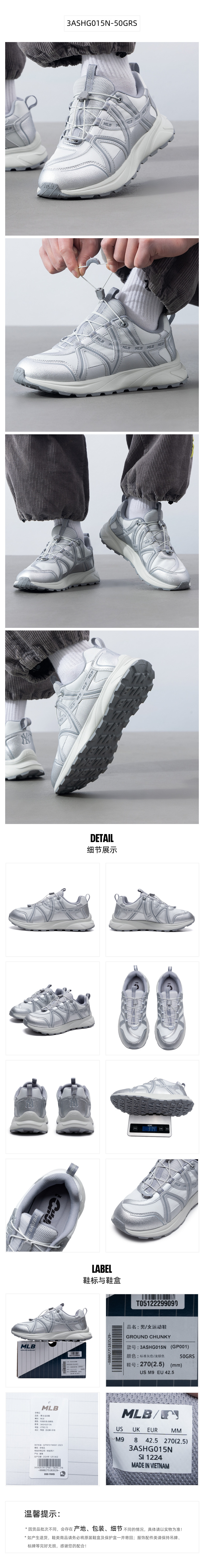 美职棒(MLB) 中性运动百搭休闲鞋 3ASHG015N-50GRS 37.5 37.5 银色(单位:双)