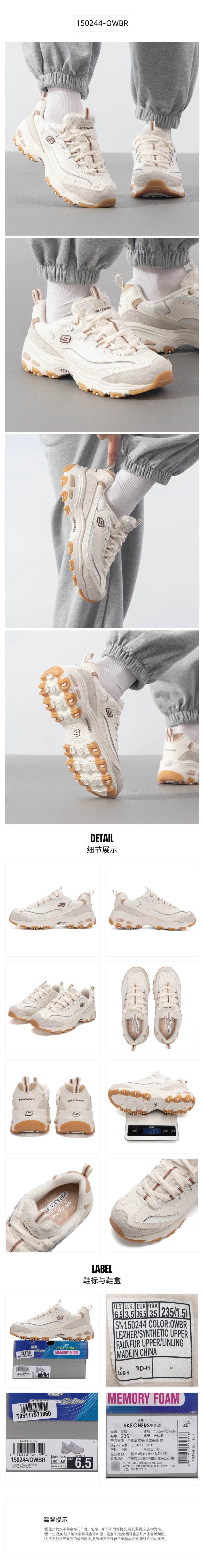 斯凯奇(Skechers) 女运动休闲鞋熊猫鞋 150244-OWBR 35 35 乳白色/棕色(单位:双)