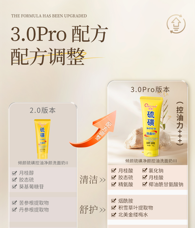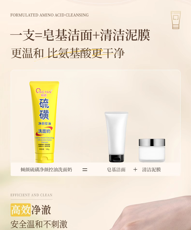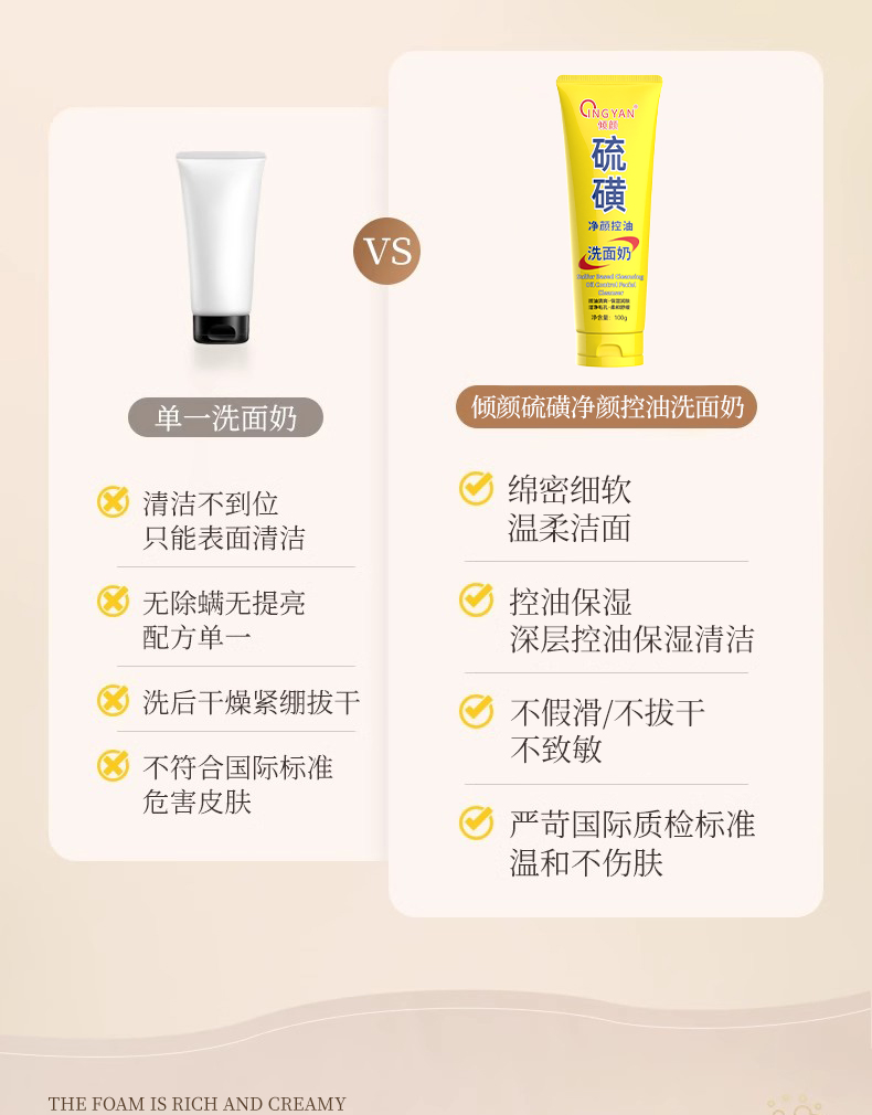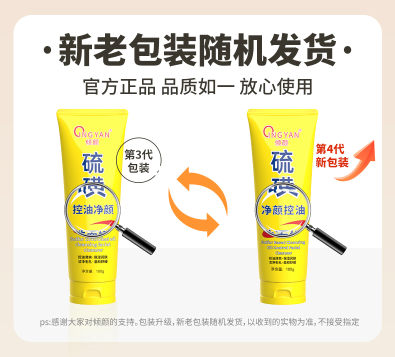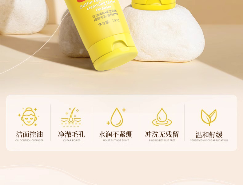 倾颜 硫磺净颜控油洗面奶 全天滋润去油光 100g*4支 黄色(单位:组)