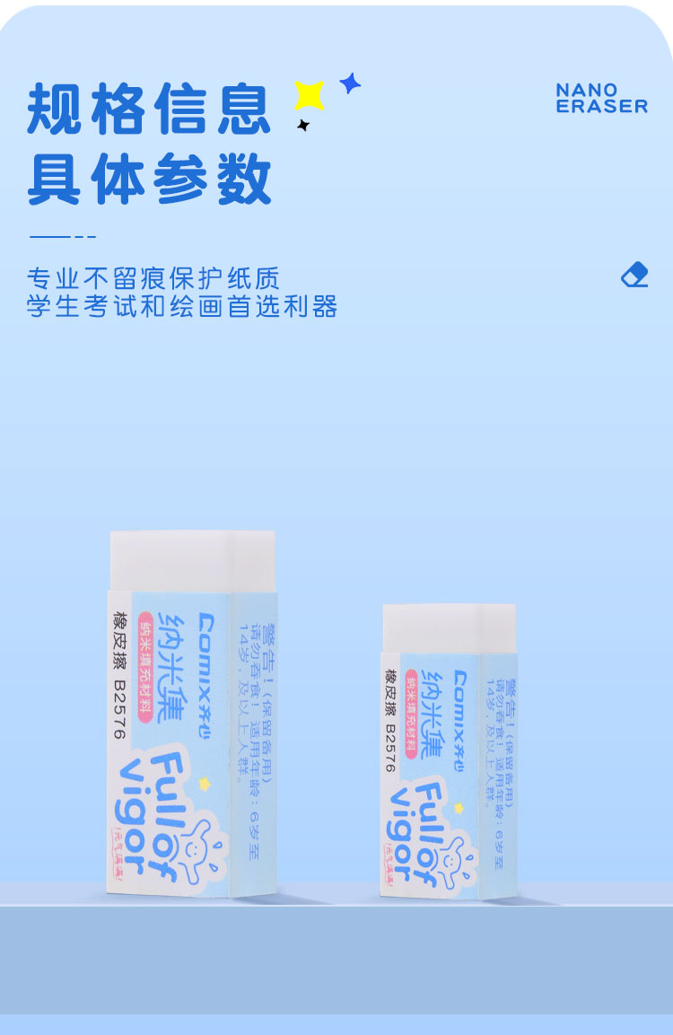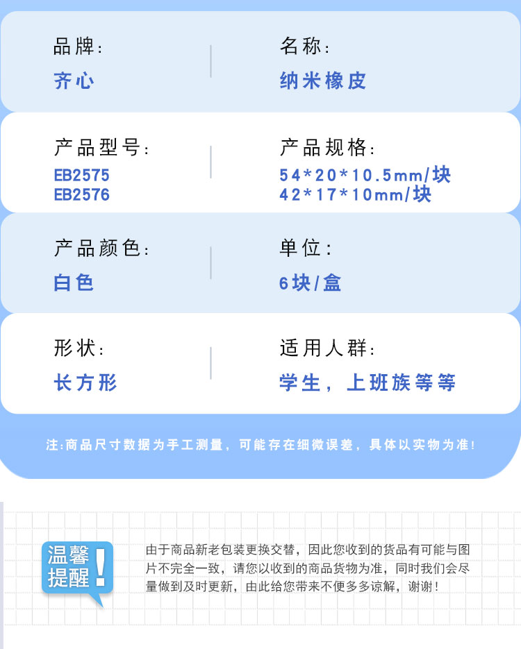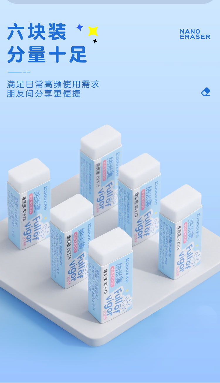 齐心(COMIX) 橡皮擦 B2576 小号6p 白色(单位:盒)