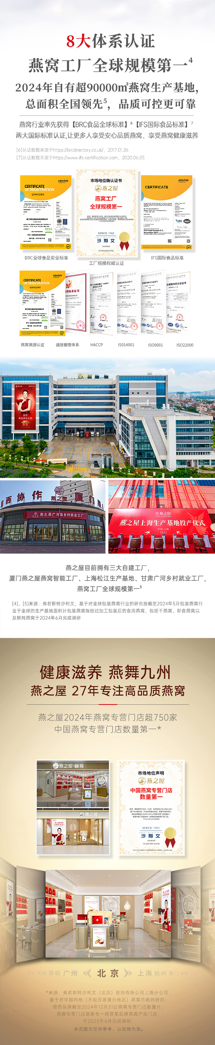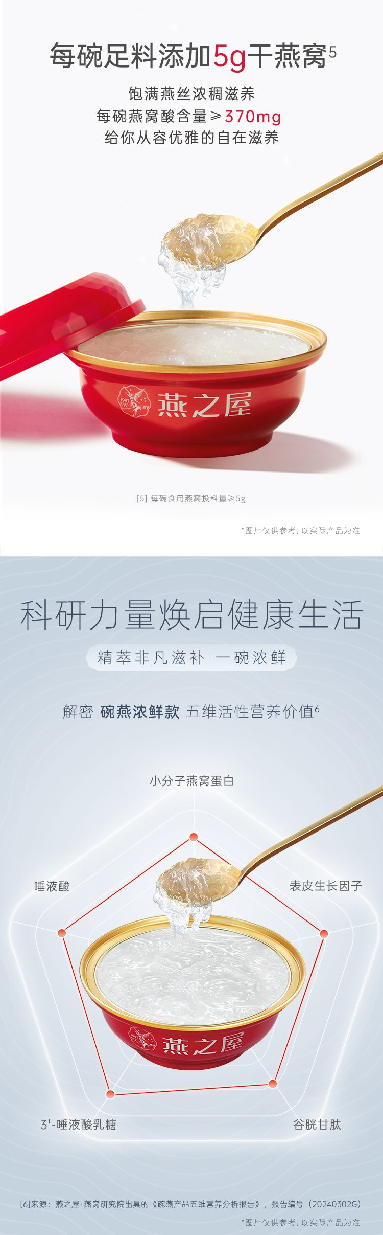 燕之屋 碗燕浓鲜低糖款 浓鲜6 138g*6碗礼盒 黄色(单位:盒)