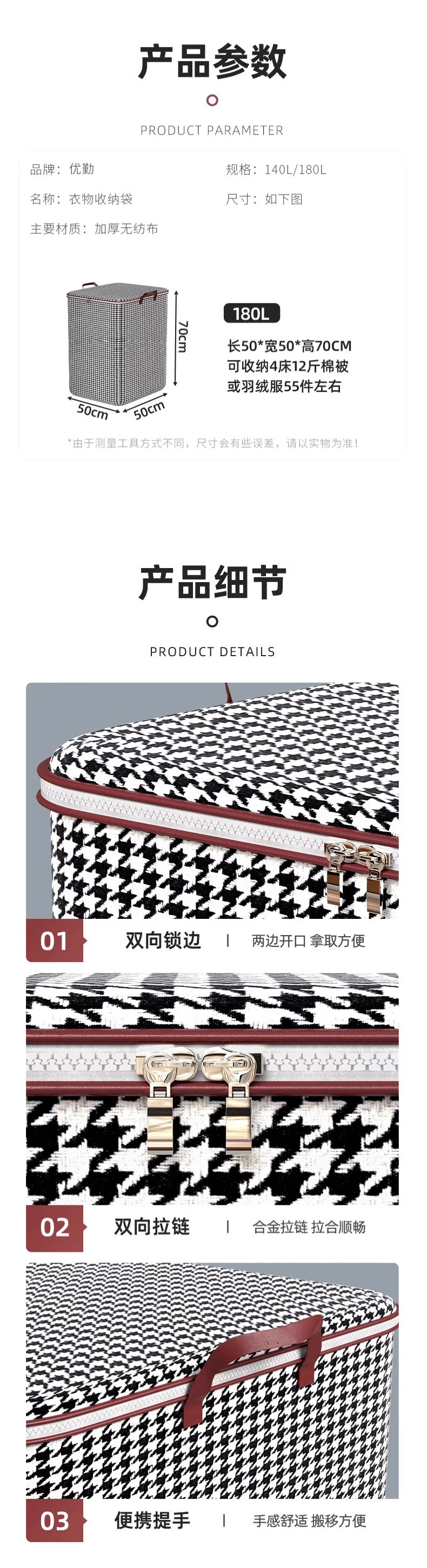 优勤(YOUQIN) Y5070衣物收纳袋加大号 JR-Y5070YWSNDJDH-QNG#-898N 50*50*70cm/个*1 千鸟格(单位:个)