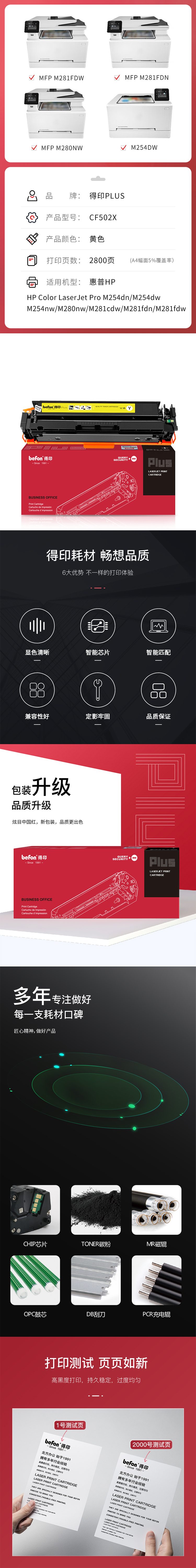 得印(befon) 硒鼓 CF502X PLUS版 2800页 黄色(单位:支)