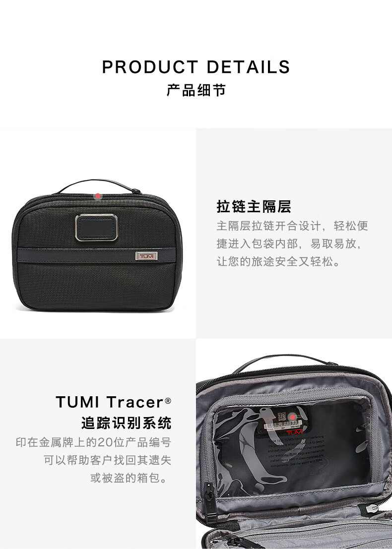 途明(TUMI) Alpha 3洗漱收纳包分离式旅行化妆包 02203193D3 14cmx21.5cmx9cm 无色(单位:个)