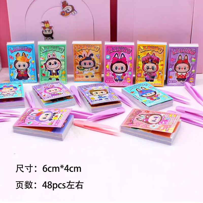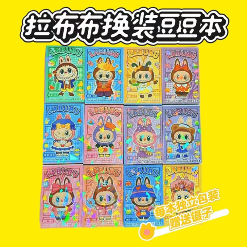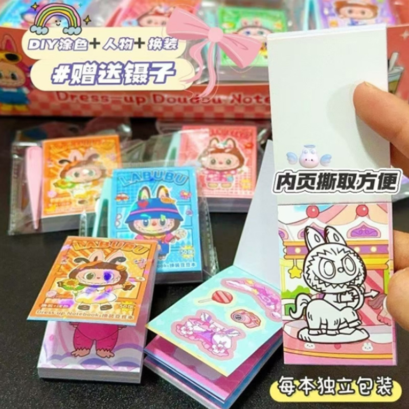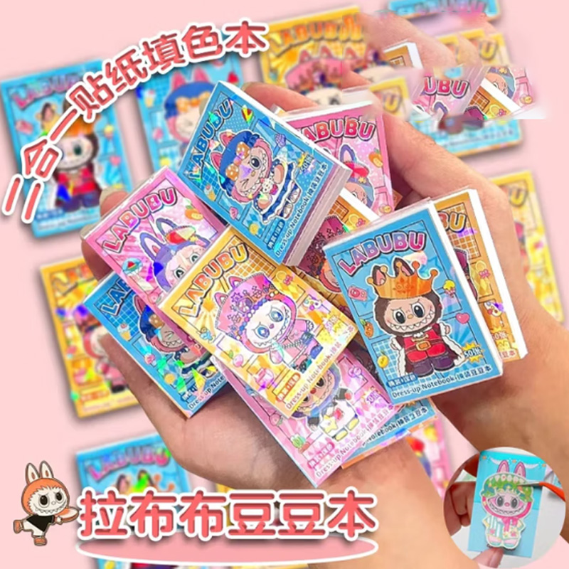 钧捷 换装涂色labubu迷你卡通贴纸儿童玩具 【4本装】1组 拉布布豆豆本 30g 混色(单位:组)