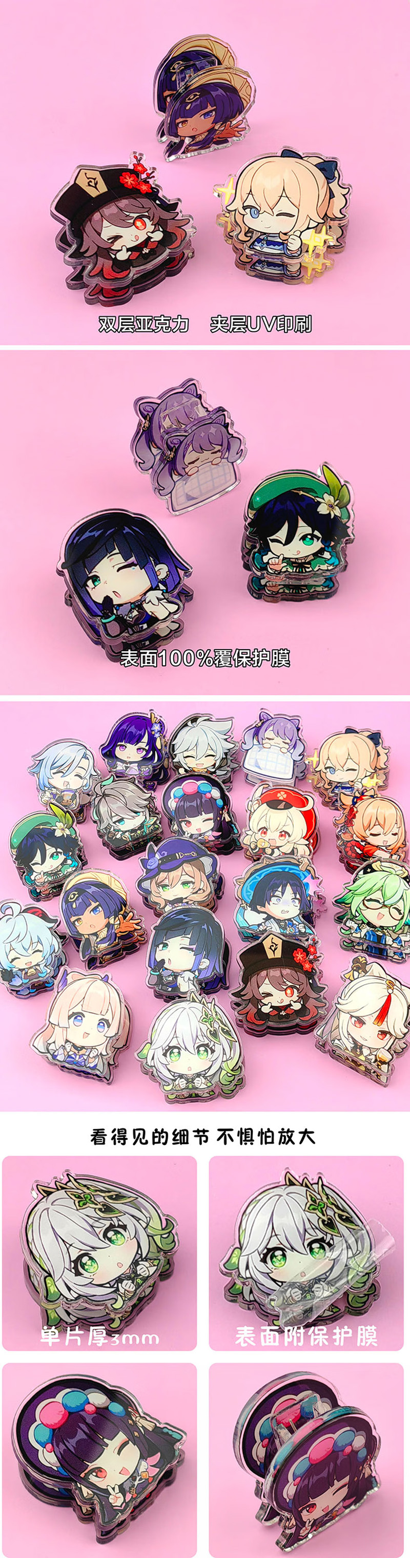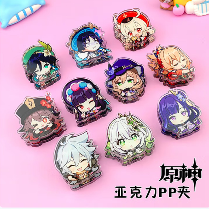 钧捷 亚克力屁屁夹子可爱卡通动漫周边学生儿童文具生日小礼物1组 原神(5个装) 50g 混色(单位:组)