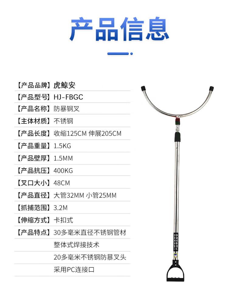虎鲸安 防暴钢叉 腰叉 伸缩防爆叉 HJ-YC-10 收缩125CM伸展205CM 不锈钢色(单位:把)
