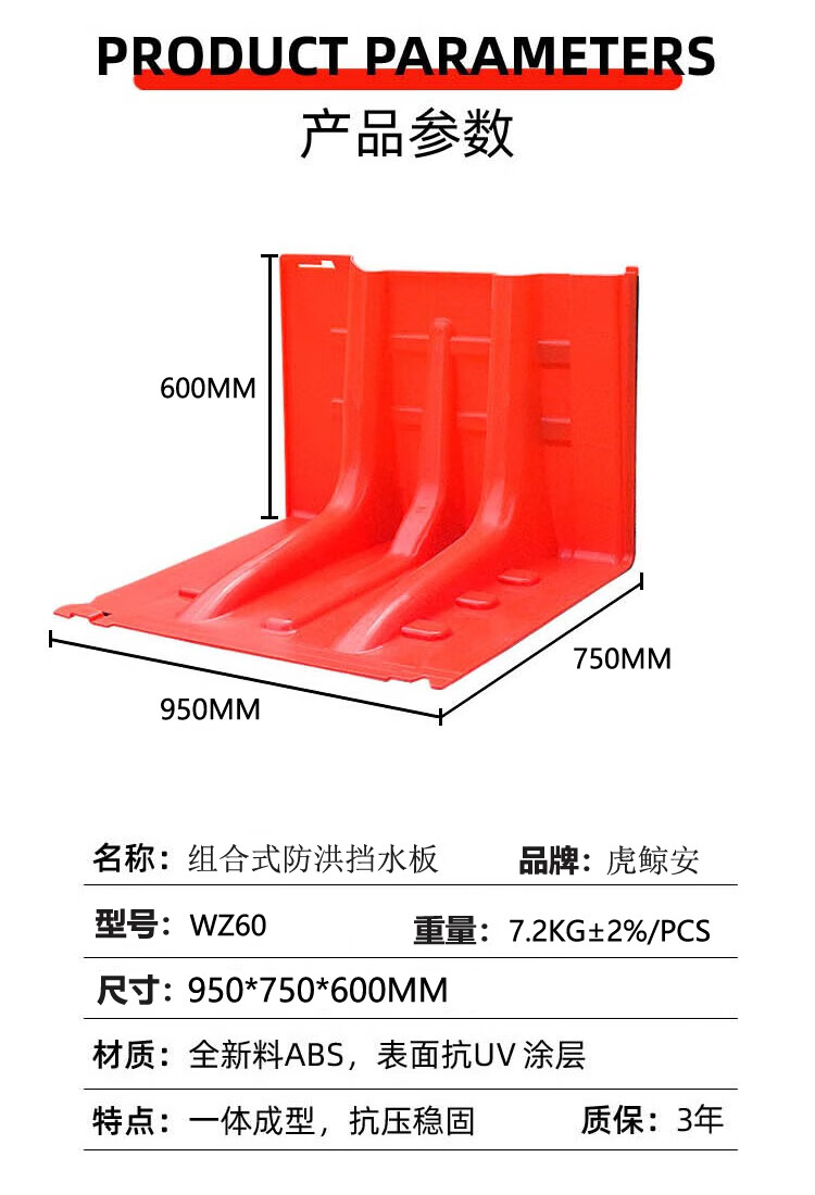 虎鲸安 组合式防洪挡水板(直板) WZ60 750*950*600MM 红色(单位:片)