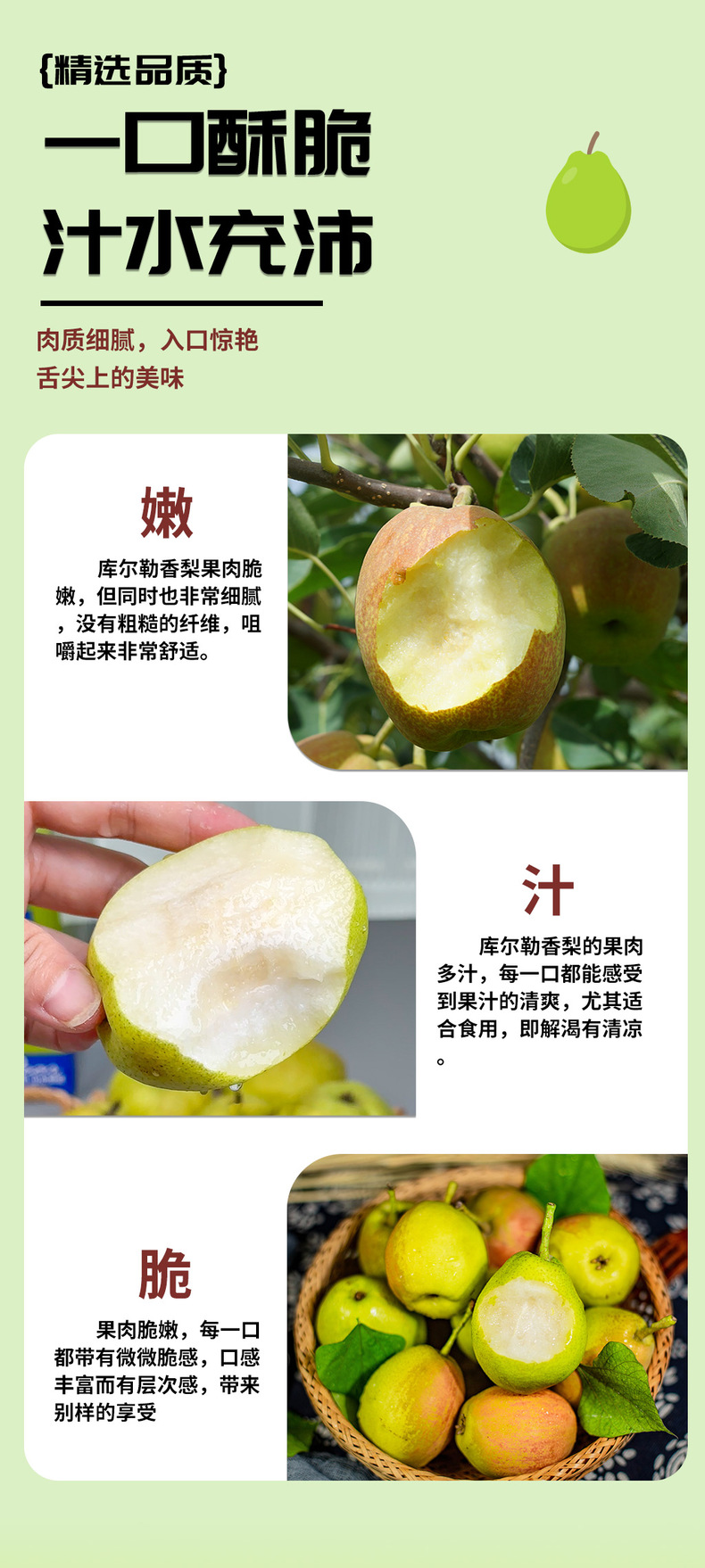 食欲跳动 一口酥脆 汁水丰沛 库尔勒香梨 3斤一级果(单果约100-120g) 混色(单位:箱)