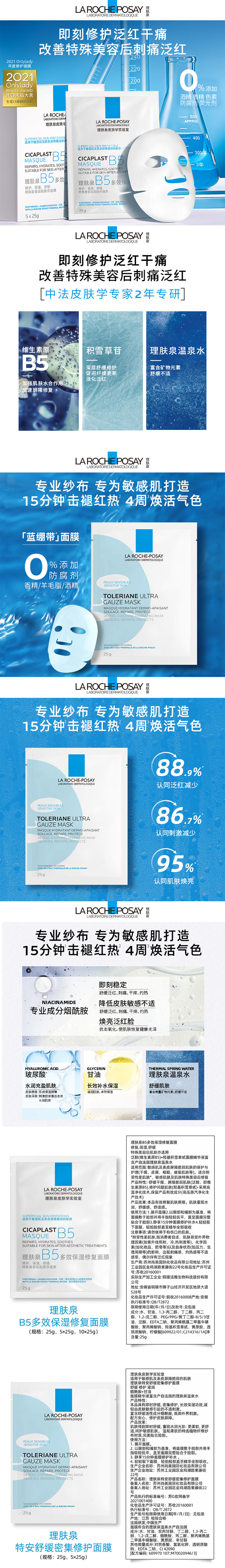 理肤泉(LA ROCHE-POSAY) 提亮修护面膜套装 组合 15片(B5*10/片+特安*5/片) 白色(单位:组)