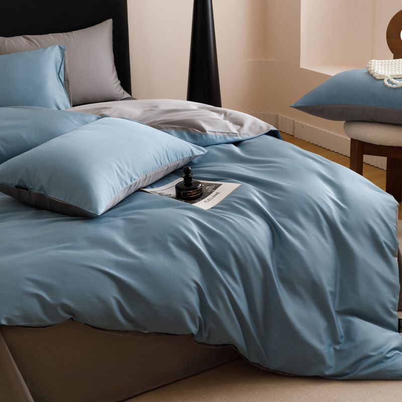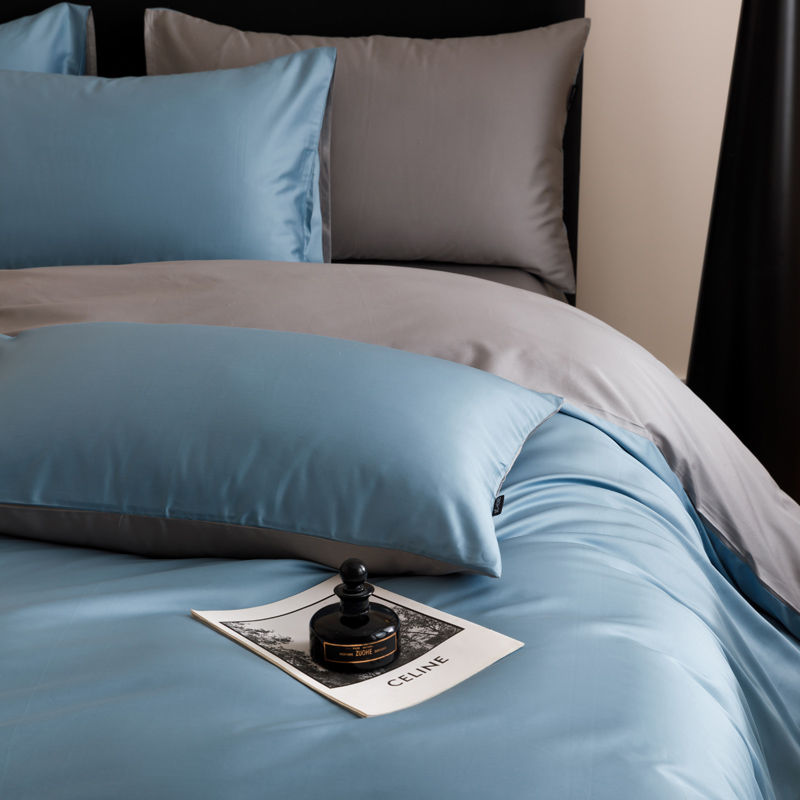 100支面料采用双股纱技术,密度更高,保持柔软顺滑的同时,面料厚度比60支要厚实,更贴身,更耐用。简约纯净、素雅时尚、独具匠心的元素,活性印染工艺,环保健康双色面,各有色彩,总有一款适合你的颜色。