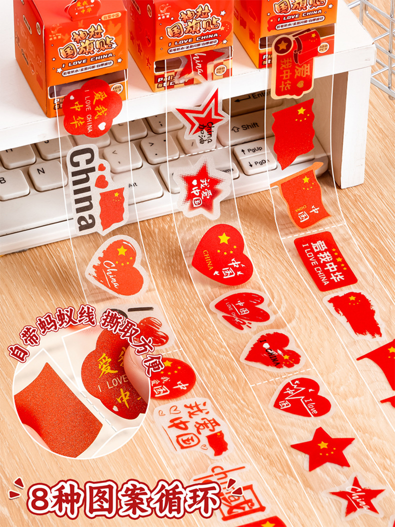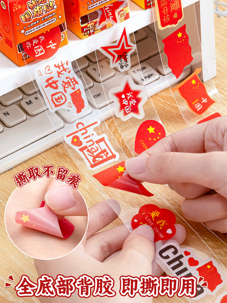 童益星 抽拉贴纸 红旗招展 1卷/100贴 红色(单位:盒)