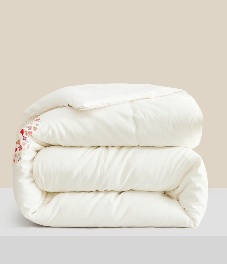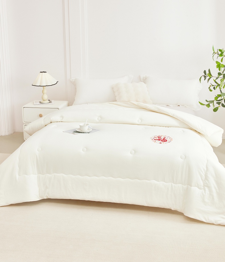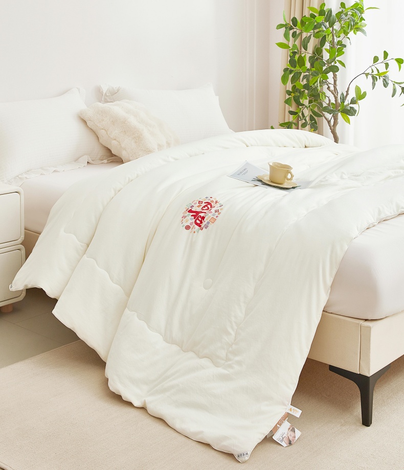 甄选高支密糯糯棉面料,柔软细腻亲肤透气,仿佛会呼吸越睡越上瘾, 甄选高品质整张羽丝棉纤维填充,纤维细腻,更透气,更贴身,蓬松舒适,轻暖兼具。经典纯色搭配百福烫画工艺,寓意吉祥,增添氛围感,享受随处的温馨柔软和高品质的睡眠。