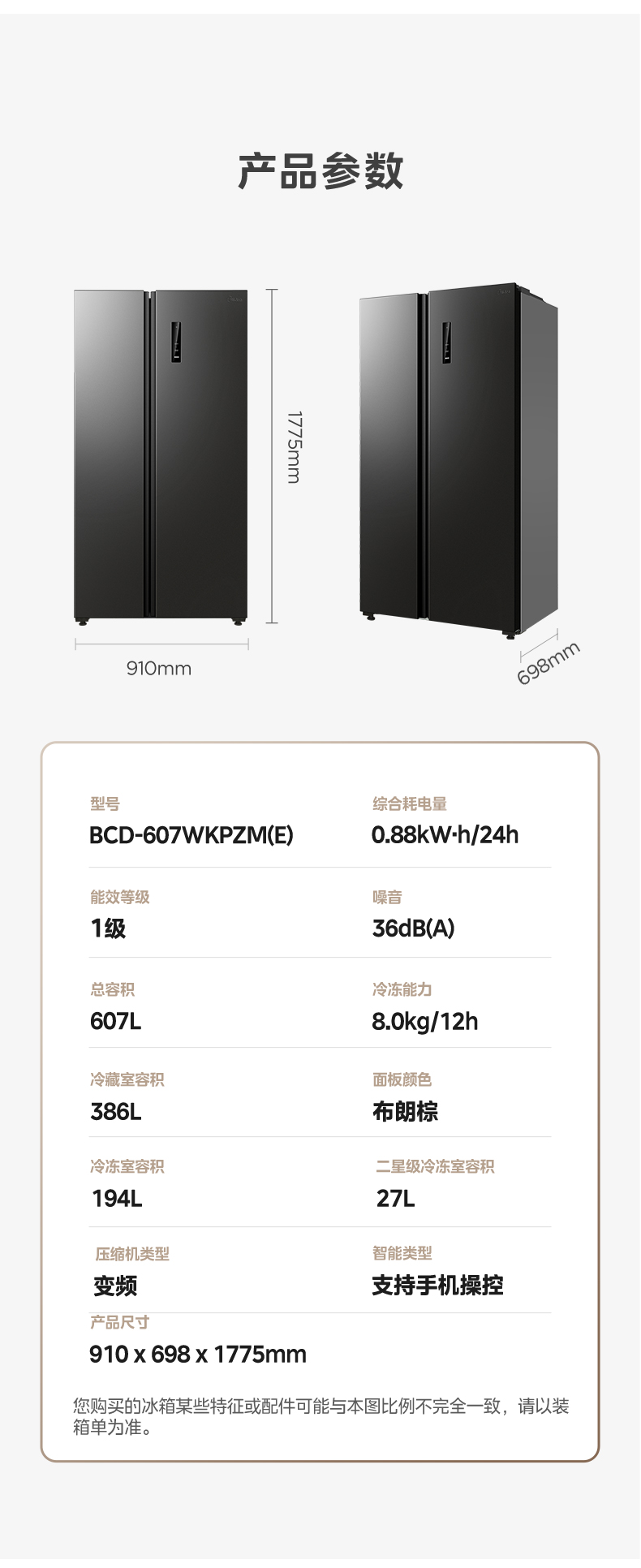 美的(Midea) 冰箱 BCD-607WKPZM(E) 607L 布朗棕(单位:台)