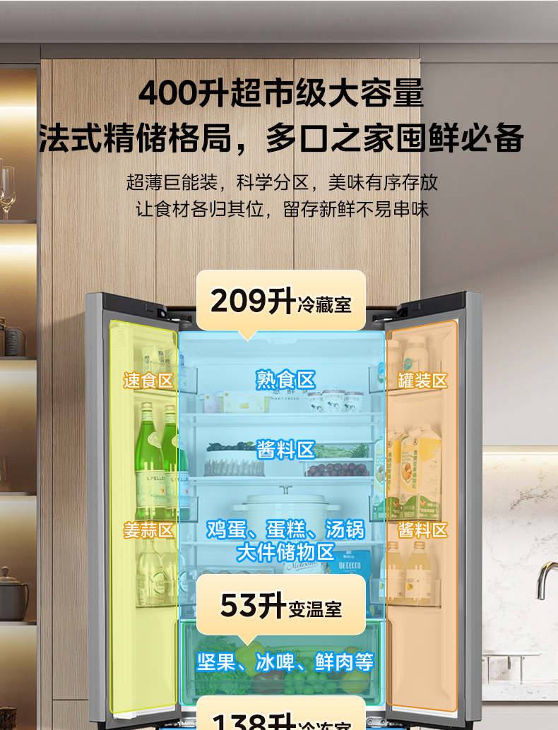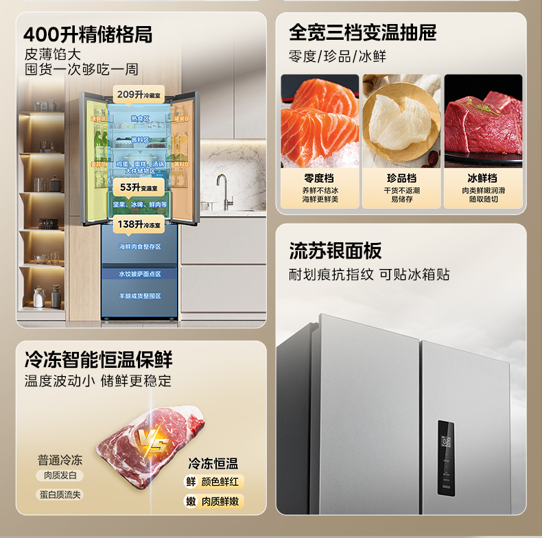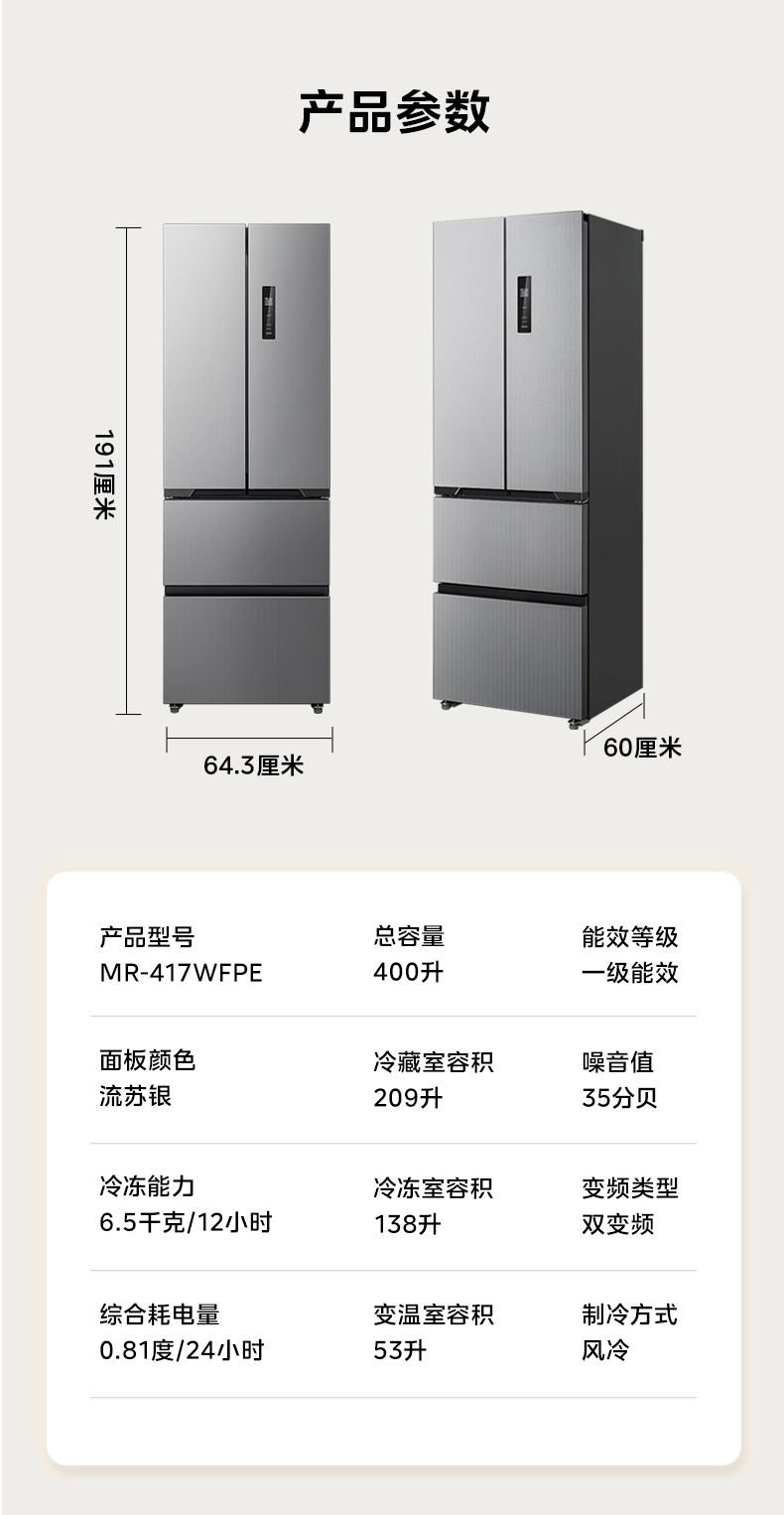 美的(Midea) 冰箱 MR-417WFPE 400L 流苏银(单位:台)