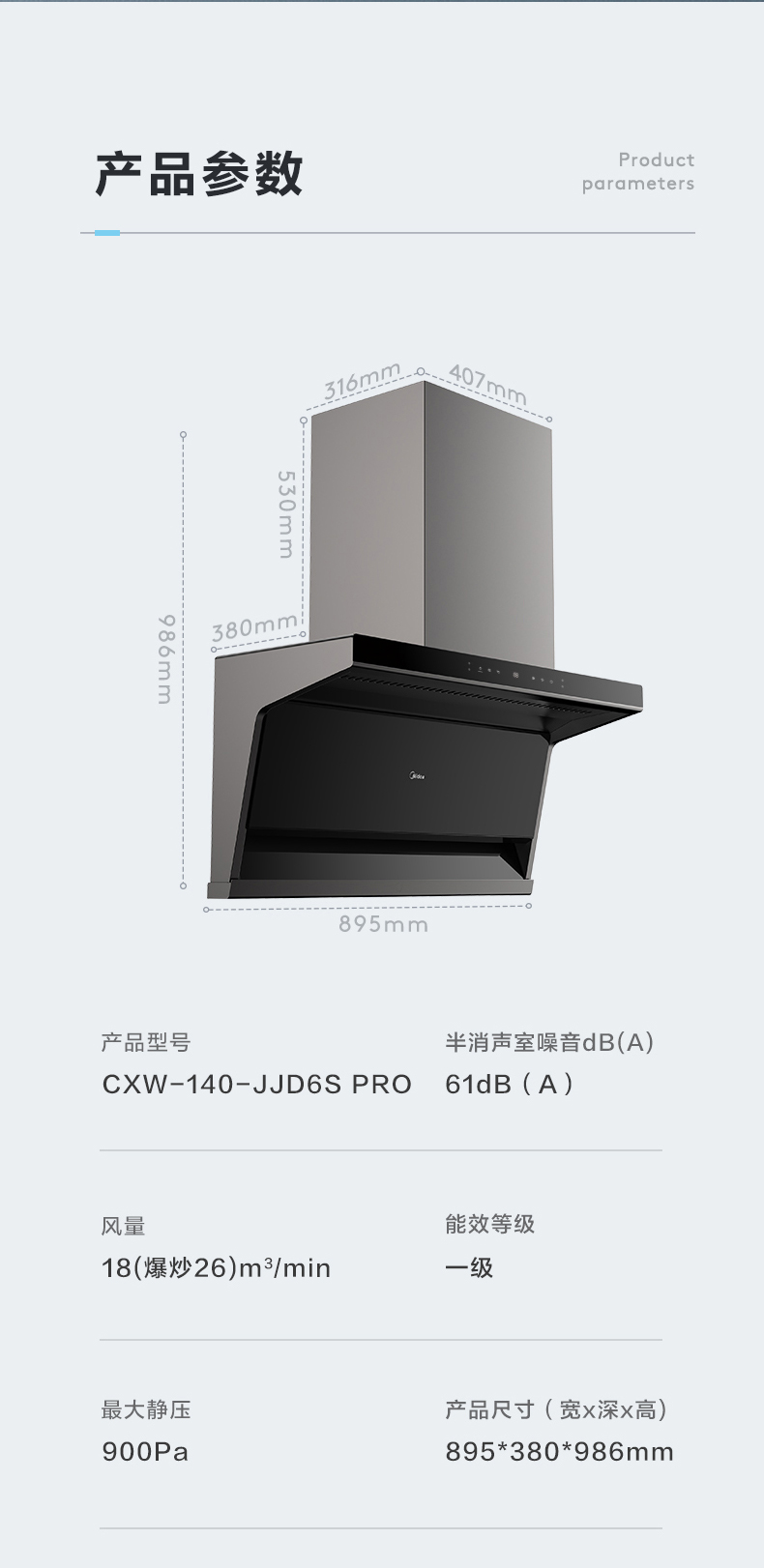 美的(Midea) 烟机 CXW-140-JJD6S PRO 18/26 m³/min 黑色(单位:台)