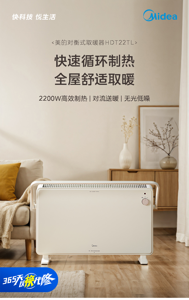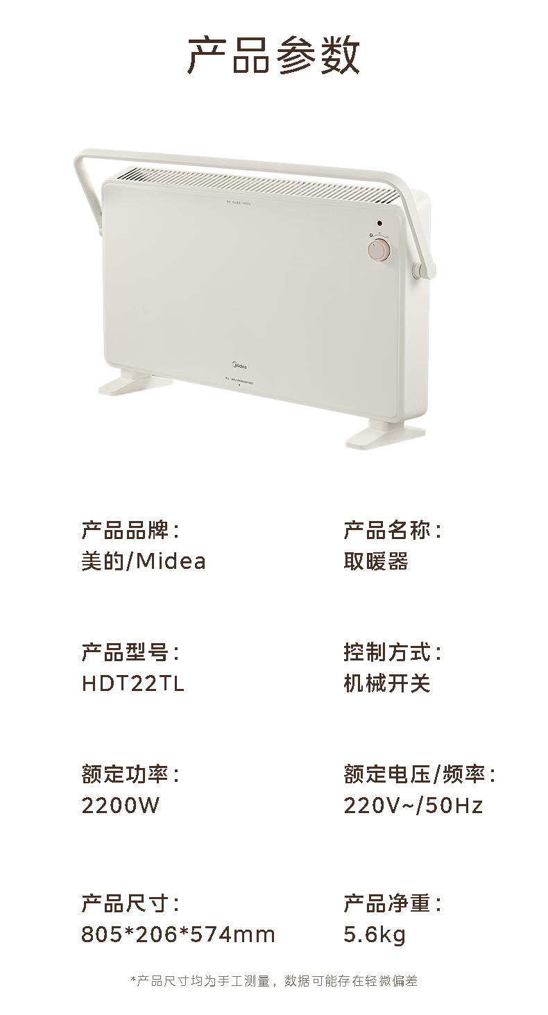 美的(Midea) 取暖器 HDT22TL 2200W 白色(单位:台)