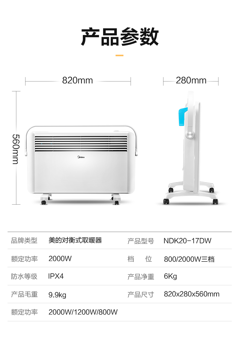 美的(Midea) 取暖器 NDK20-17DW 2000W 白色(单位:台)