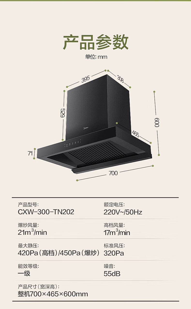 美的(Midea) 油烟机 CXW-300-TN202 17m³/min 黑色(单位:台)