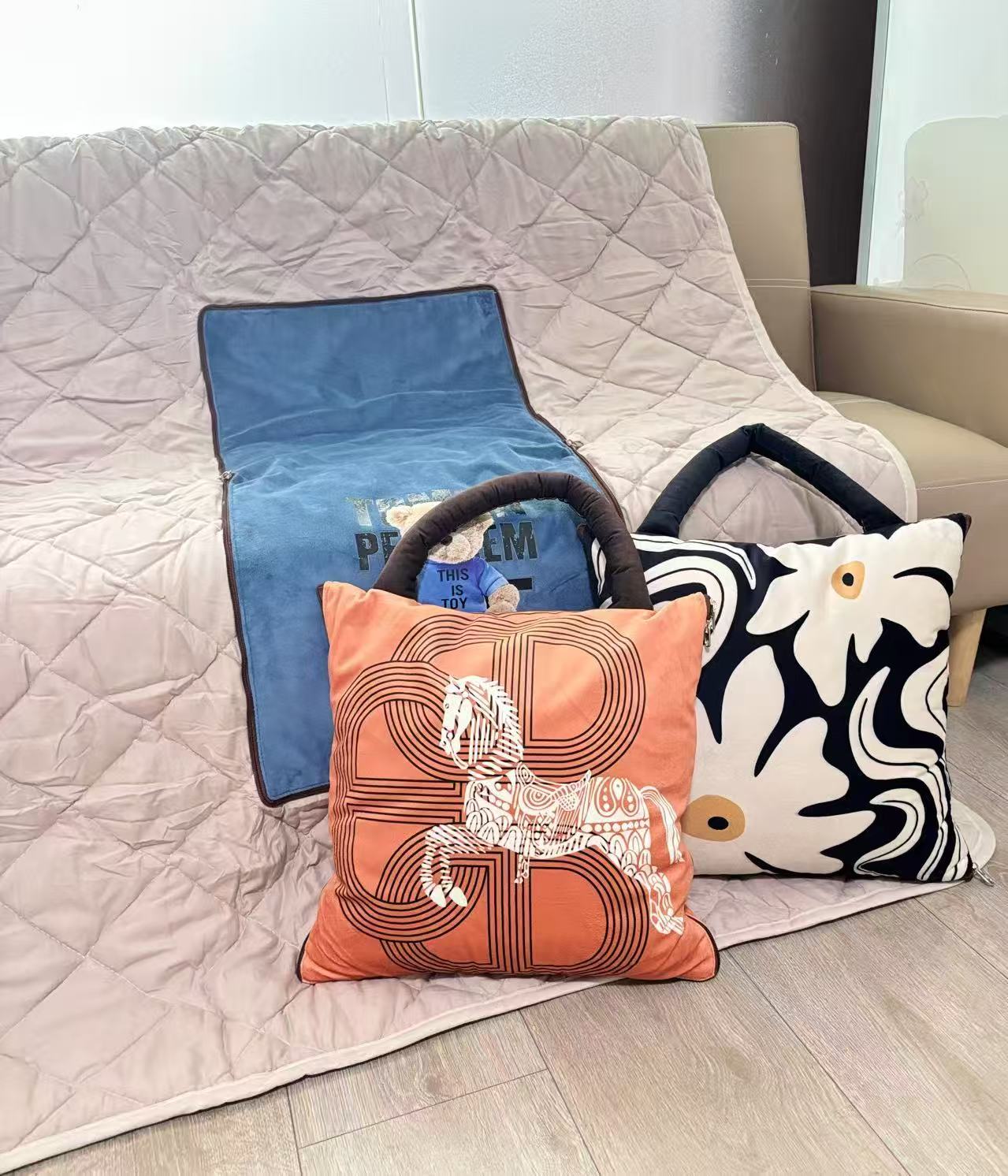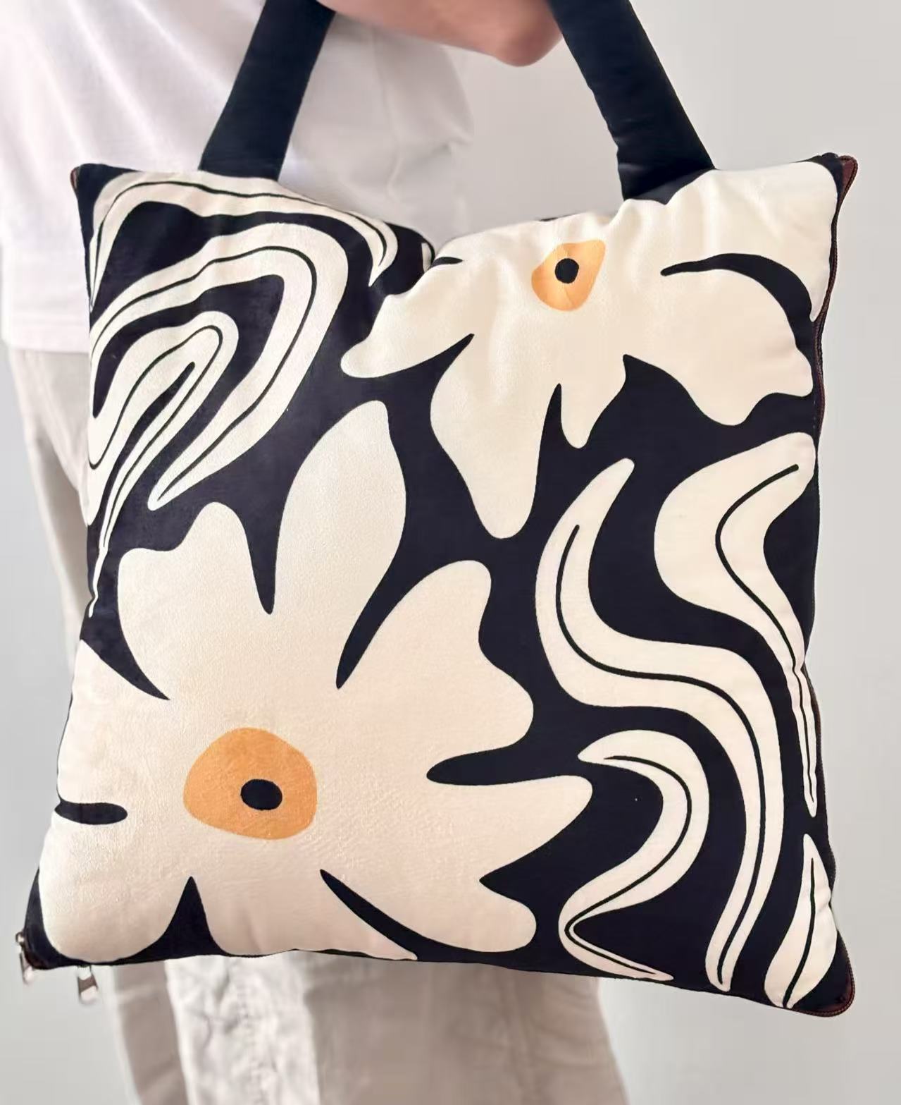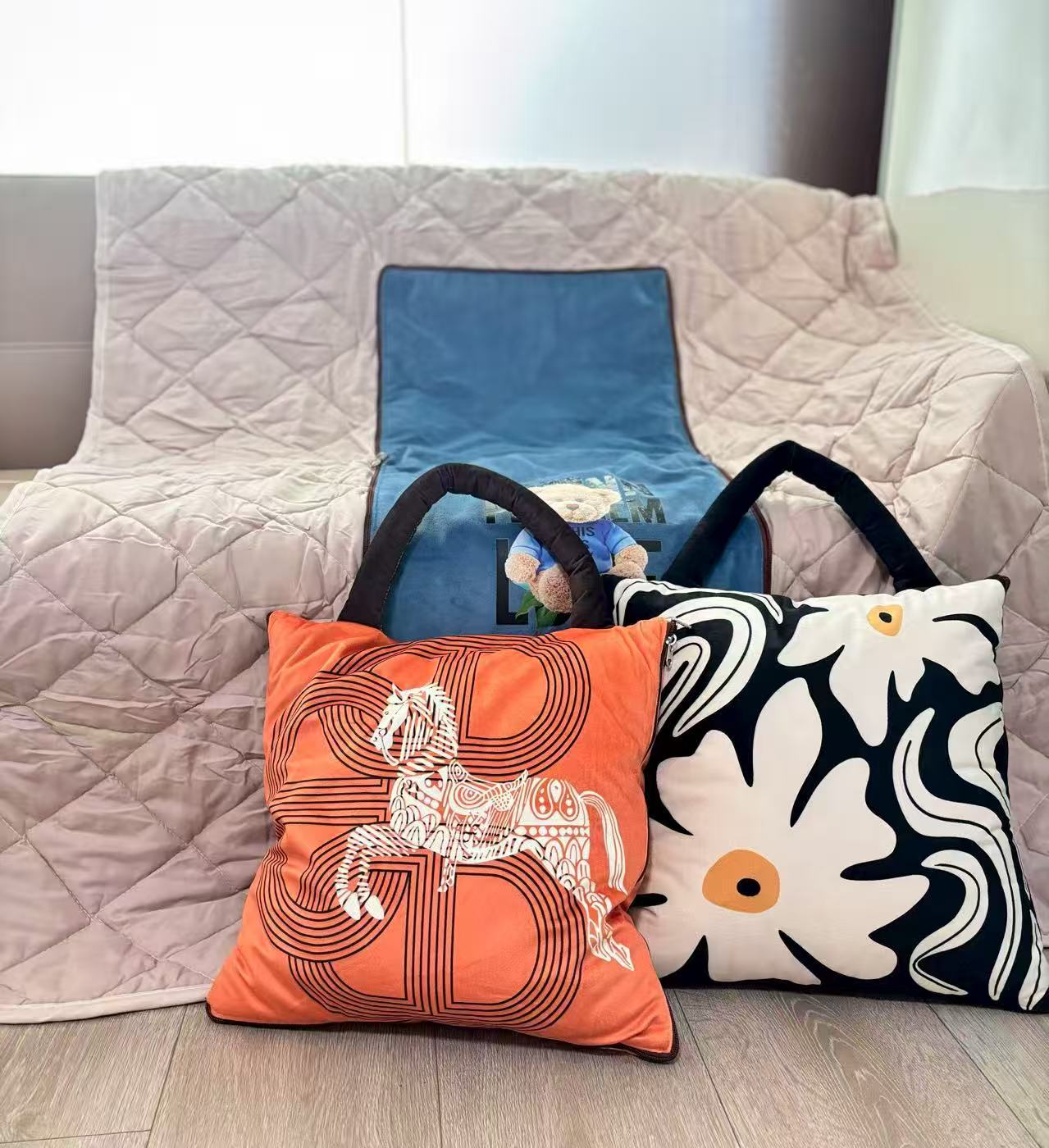 升级手提设计,使用和携带更方便,牛奶般温润,透气轻盈,柔软相伴。抱枕被被壳选用超柔荷兰绒面料,被芯水洗棉面料,柔软亲肤,吸湿透气性极佳,环保数码印花,色彩艳丽,展开是被子,抱枕、趴枕、旅行被、靠垫、空调被,满足日常多个场所,点缀缤纷生活。