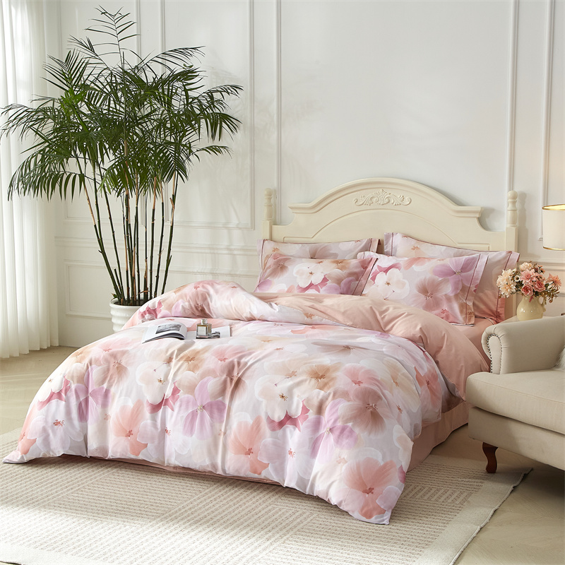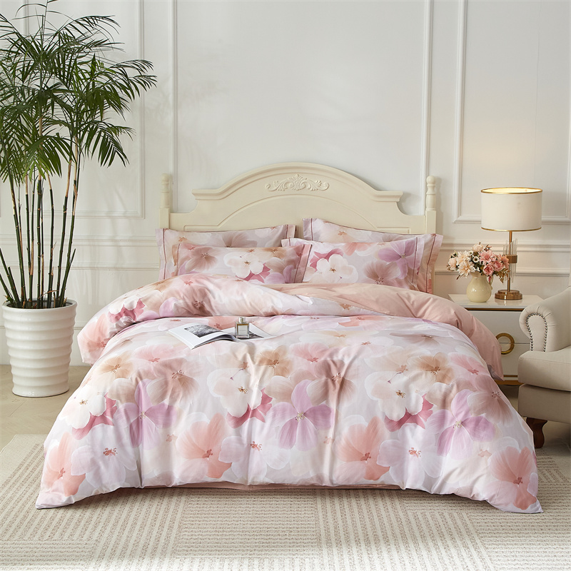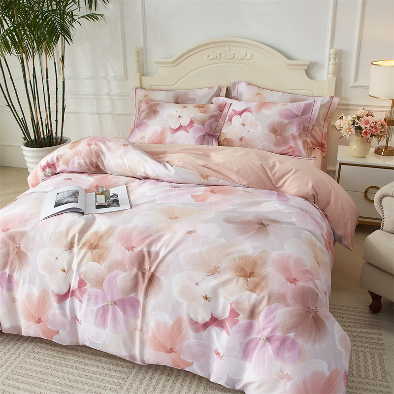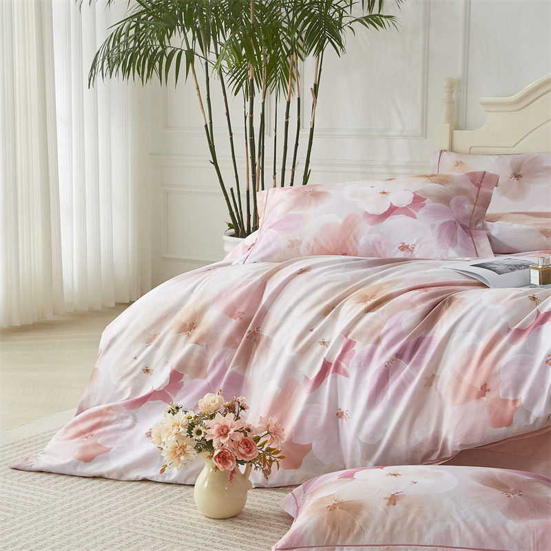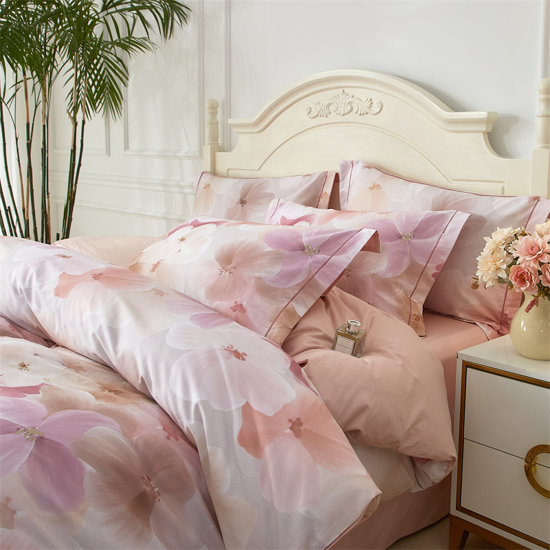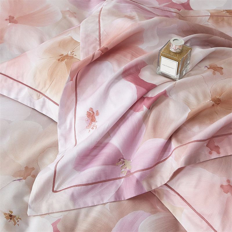 棉中贵族,高支高密铂金全棉面料,细腻棉柔,光泽自然, AB版数码印花,经过绿色工艺精细织造,四季可用,优雅之上,健康舒适睡眠。