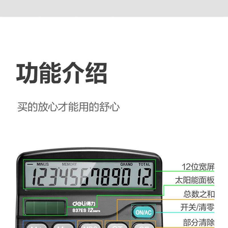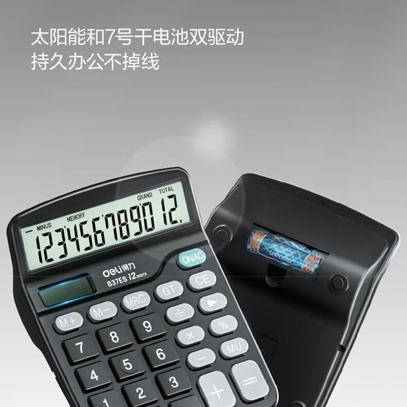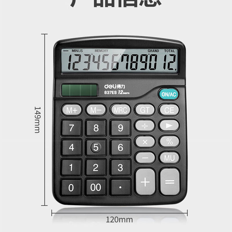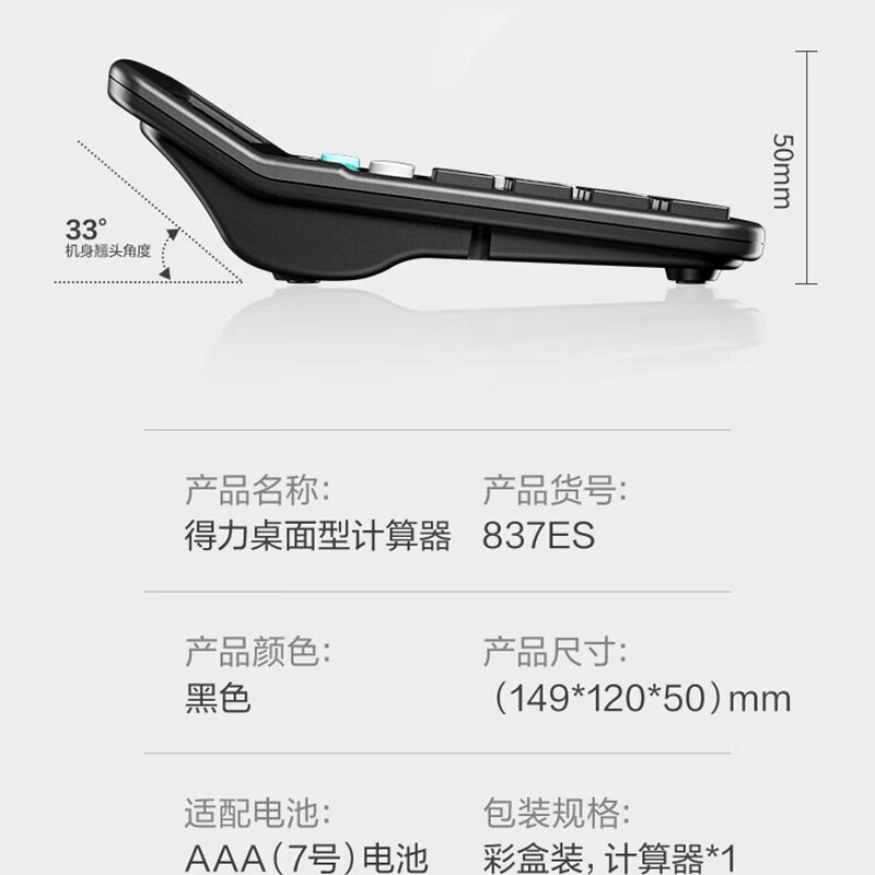 得力(deli) 桌面计算器 837ES 149*120*50mm 黑色(单位:台)
