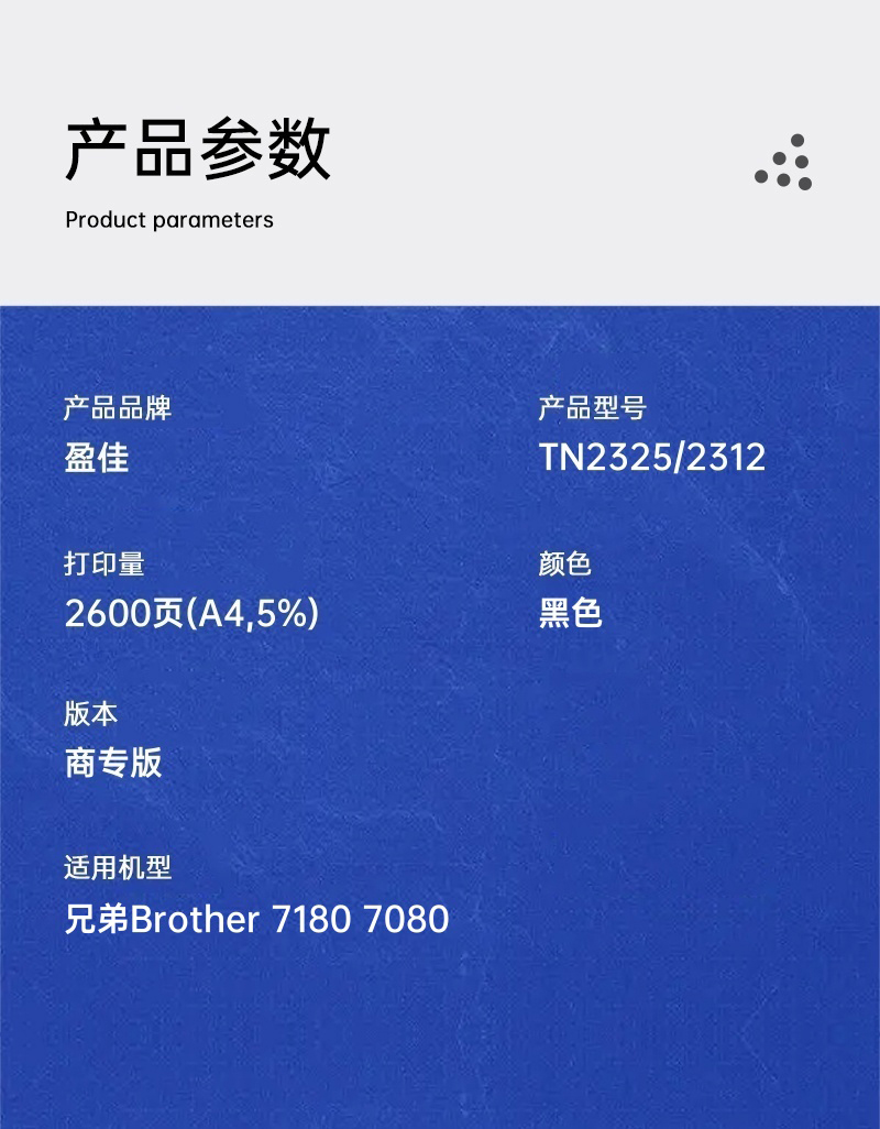 盈佳 TN2325/2312 粉盒 商专版 适用于兄弟Brother 7180 7080(计价单位:支) 黑色