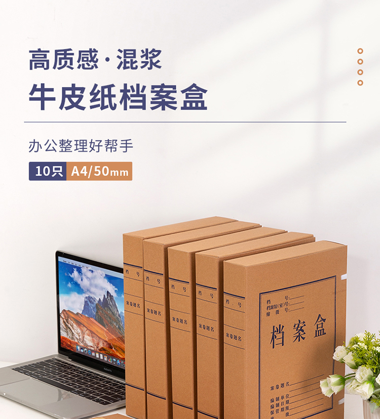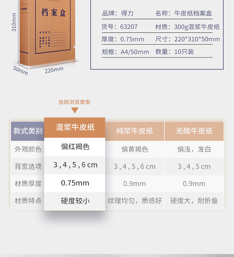 得力(deli) 63207 【侧宽50mm】10只装-加厚款 牛皮纸文件盒 褐色(单位:组)
