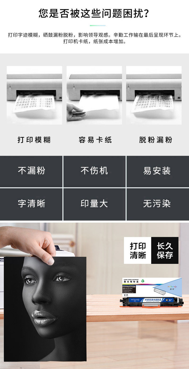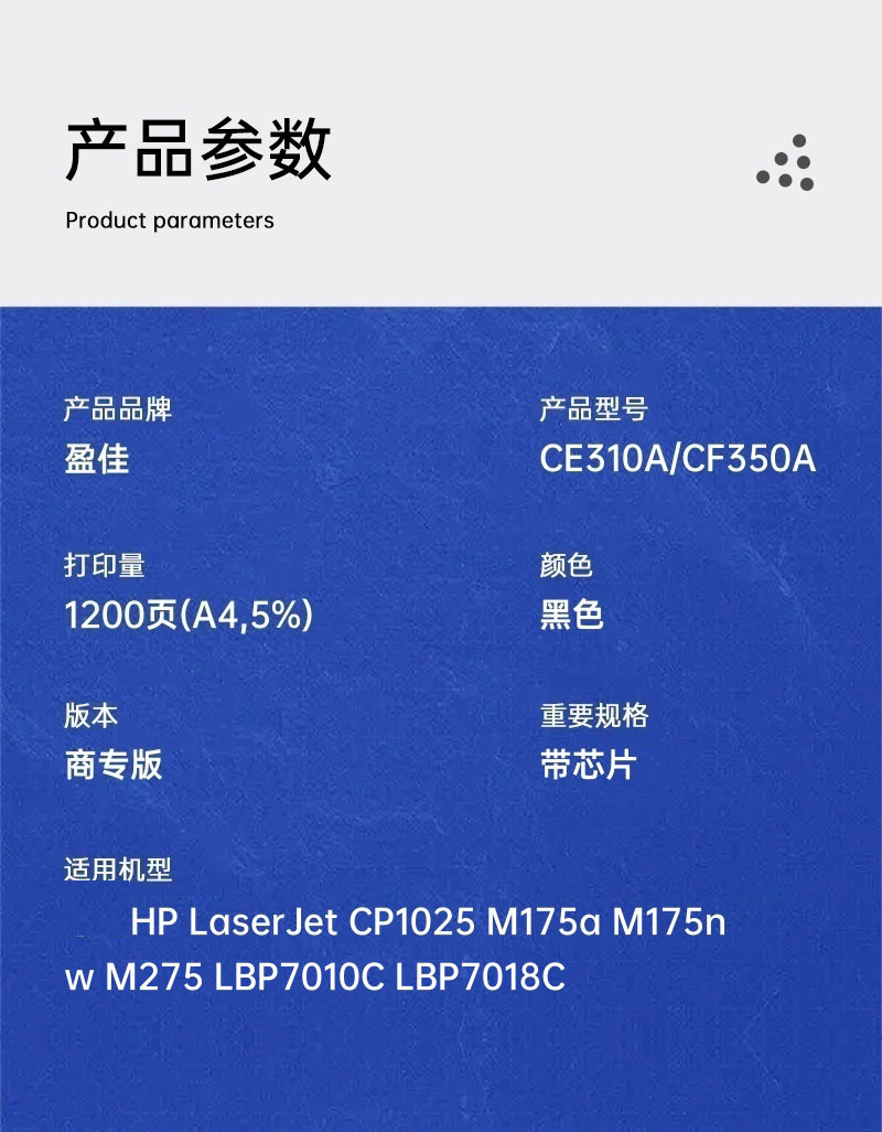 盈佳 CE310A/CF350A 粉盒 商专版 带芯片 适用于HP LaserJet CP1025(计价单位:支) 黑色