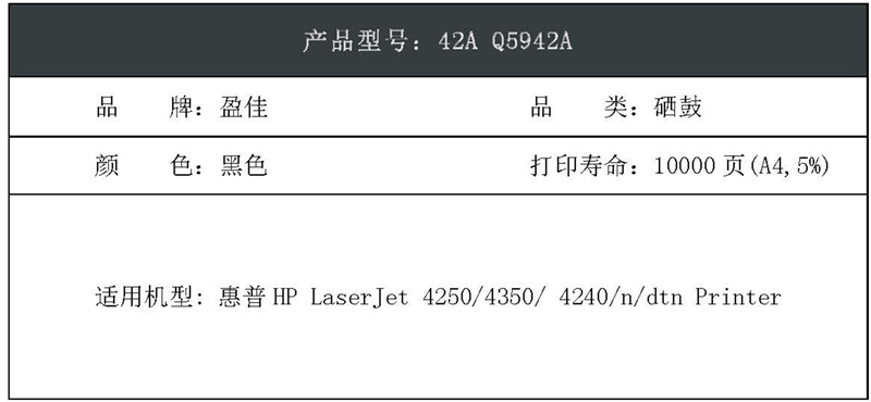 盈佳(Ink Cartridge) YJ-Q5942A 10000页 适用惠普4250 4350 硒鼓 (计价单位:只) 黑色