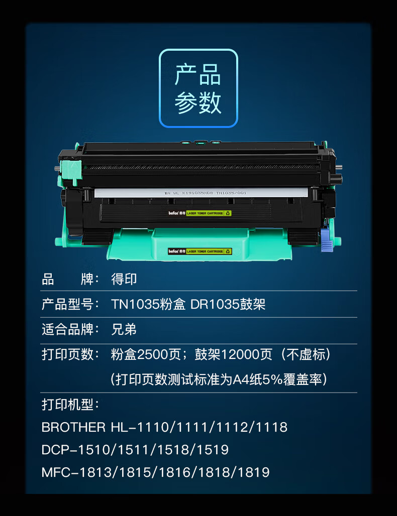 得印 TN1035硒鼓+粉盒套装 适用兄弟dcp1618W 1518 1608 单位:套 黑色