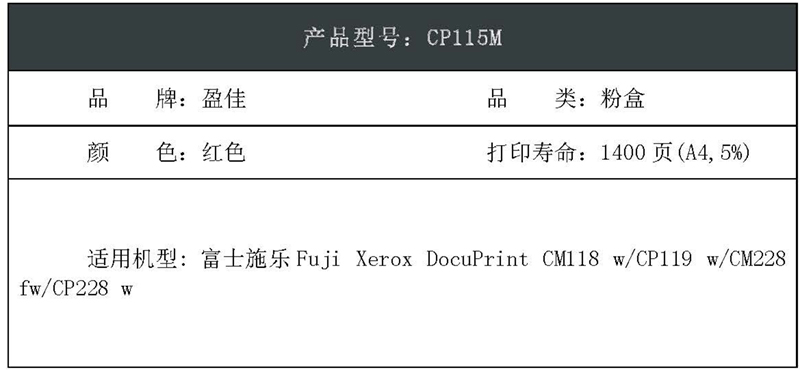 盈佳(Ink Cartridge) YJ-CM118-M 大容量 打印量1400页 适用施乐CP118w等 粉盒 (计价单位:只) 红色