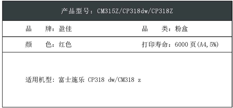 盈佳(Ink Cartridge) YJ-CP318-M-F 6000页 适用富士施乐CP318dw CM318z 粉盒 1.00 只/个 (计价单位:个) 红色