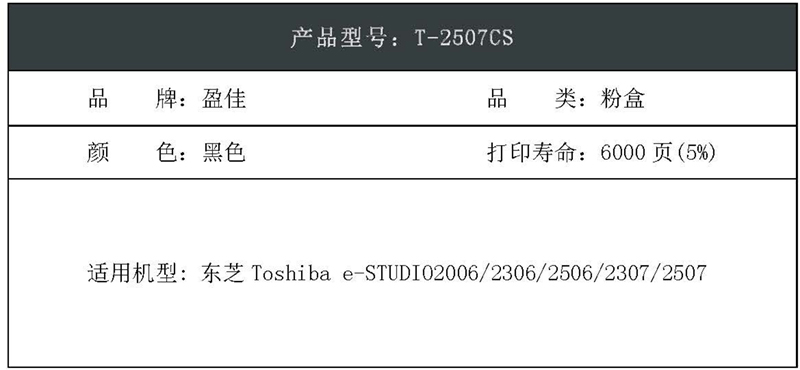 盈佳(Ink Cartridge) YJ-T2507CS-F 6000页 适用东芝e-STUDIO2006 2306 粉盒 1.00 只/个 (计价单位:个) 黑色