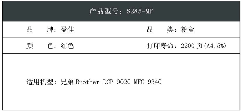 盈佳(Ink Cartridge) 上尊系列 TN285 打印量1400页 适用兄弟DCP-9020 墨粉盒 (计价单位:只) 红色