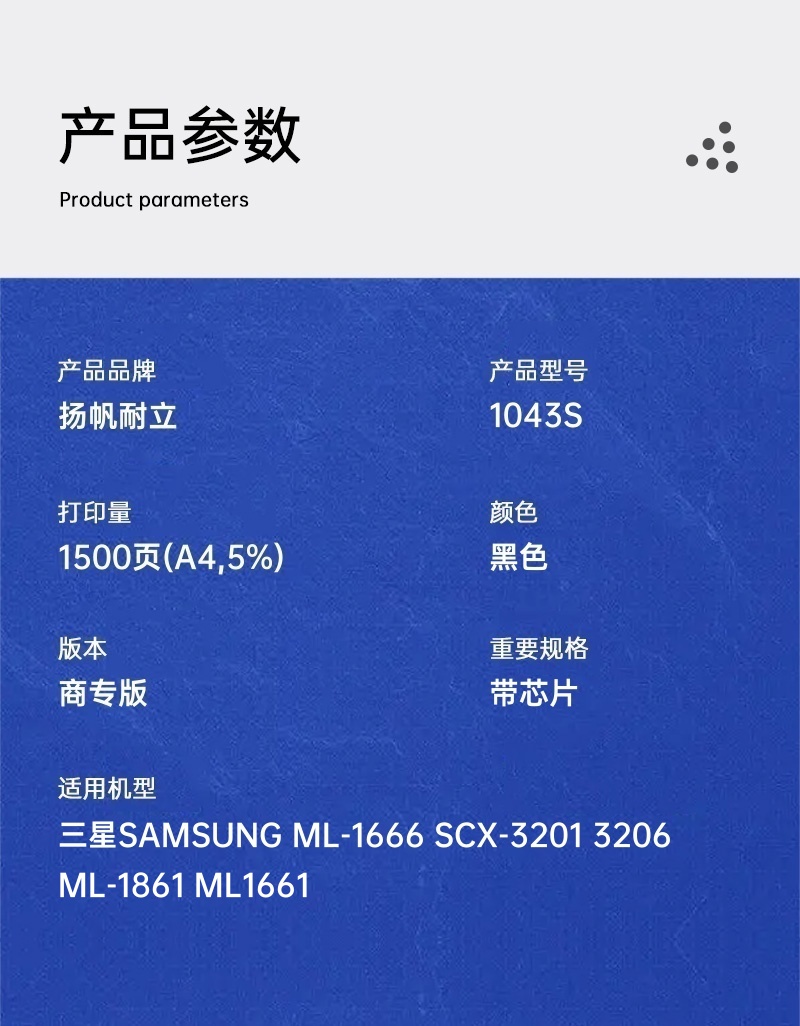 扬帆耐立(YFHC) 1043S 商专版 打印量约1500页 适用三星1666 硒鼓 1.00 只/支 (计价单位:支) 黑色