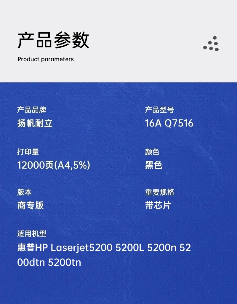 扬帆耐立(YFHC) Q7516A 商专版 打印量约12000页 适用惠普HP5200 硒鼓 1.00 只/支 (计价单位:支) 黑色
