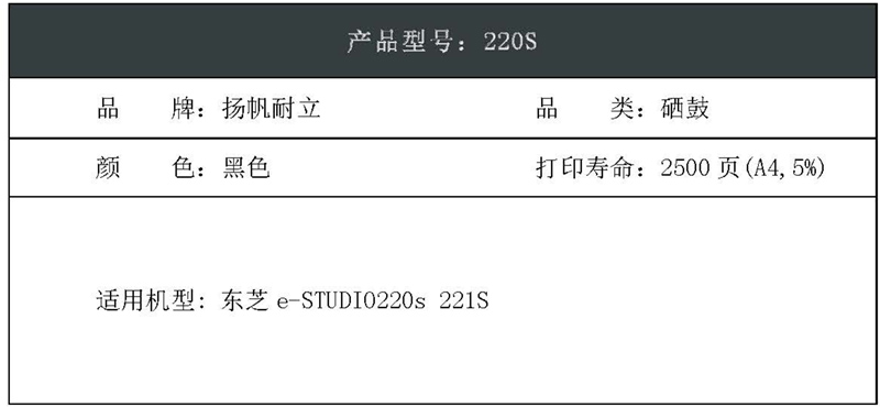 扬帆耐立(YFHC) TS-220S 商专版 打印量约2500页 适用东芝220s 硒鼓 1.00 只/支 (计价单位:支) 黑色