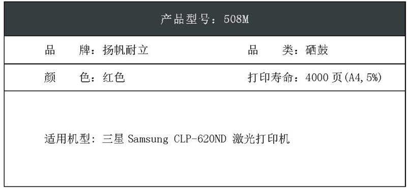 扬帆耐立(YFHC) YFHC-508L-M 4000页 适用三星CLP-620ND 激光打印机 硒鼓 1.00 只/个 (计价单位:个) 红色