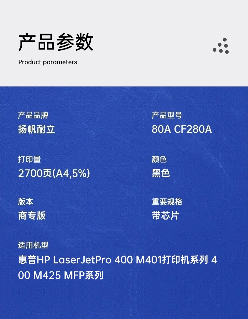 扬帆耐立 80A CF280A 激光碳粉盒/硒鼓 商专版 带芯片 黑色 2700页 适用于惠普HP LaserJetPro 400 M401打印机系列