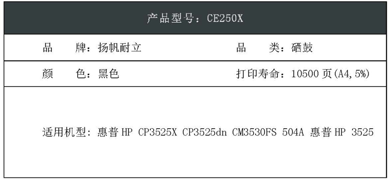 扬帆耐立(YFHC) CE250X(504X)/323 商专版 打印量约10500页 适用于惠普CP3525 CM3530 硒鼓 (计价单位:只) 黑色